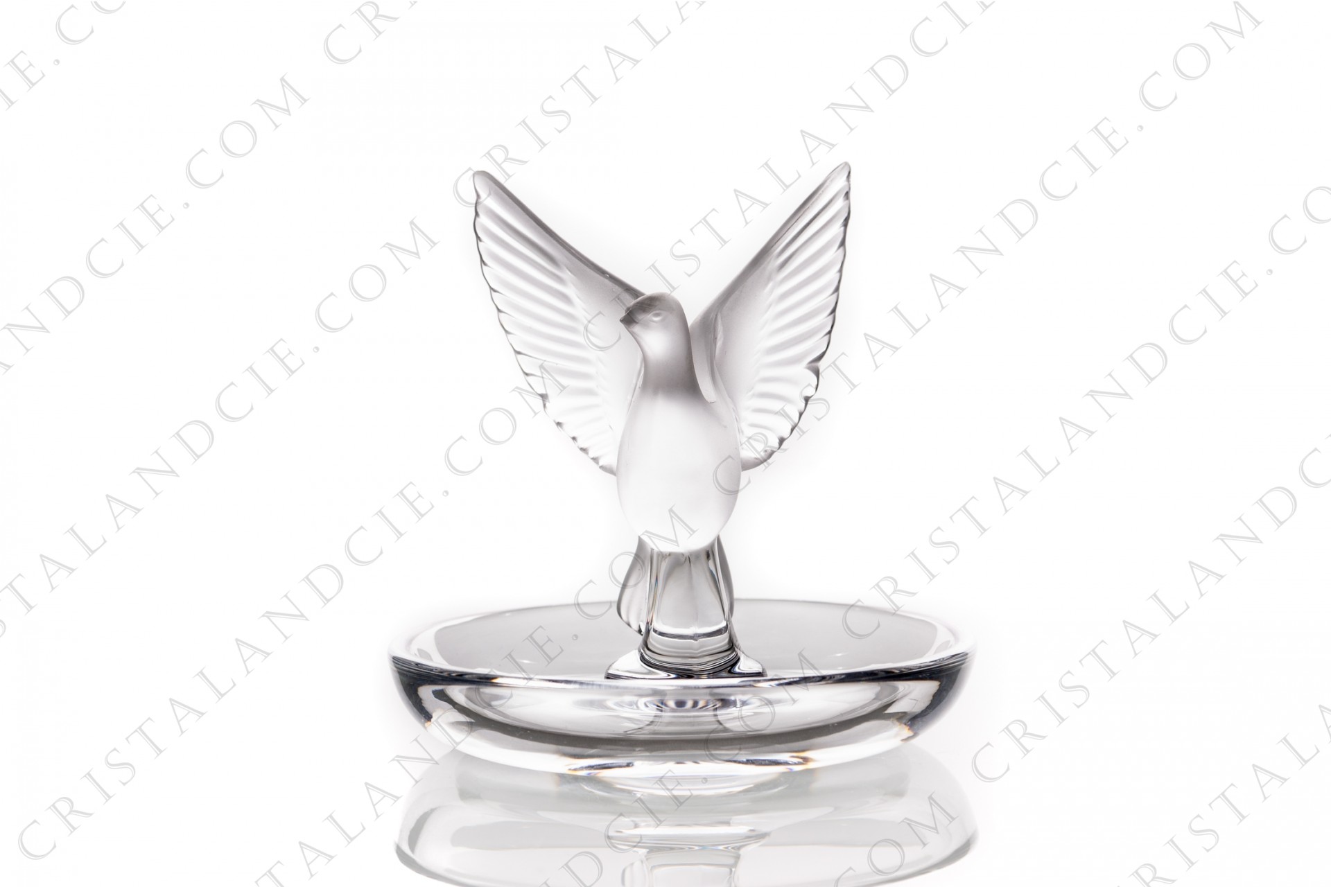 Ashtray in crystal by Lalique pattern Thalie, with a bowl in clear crystal and the bird in frosted crystal. Pattern created in 0965.