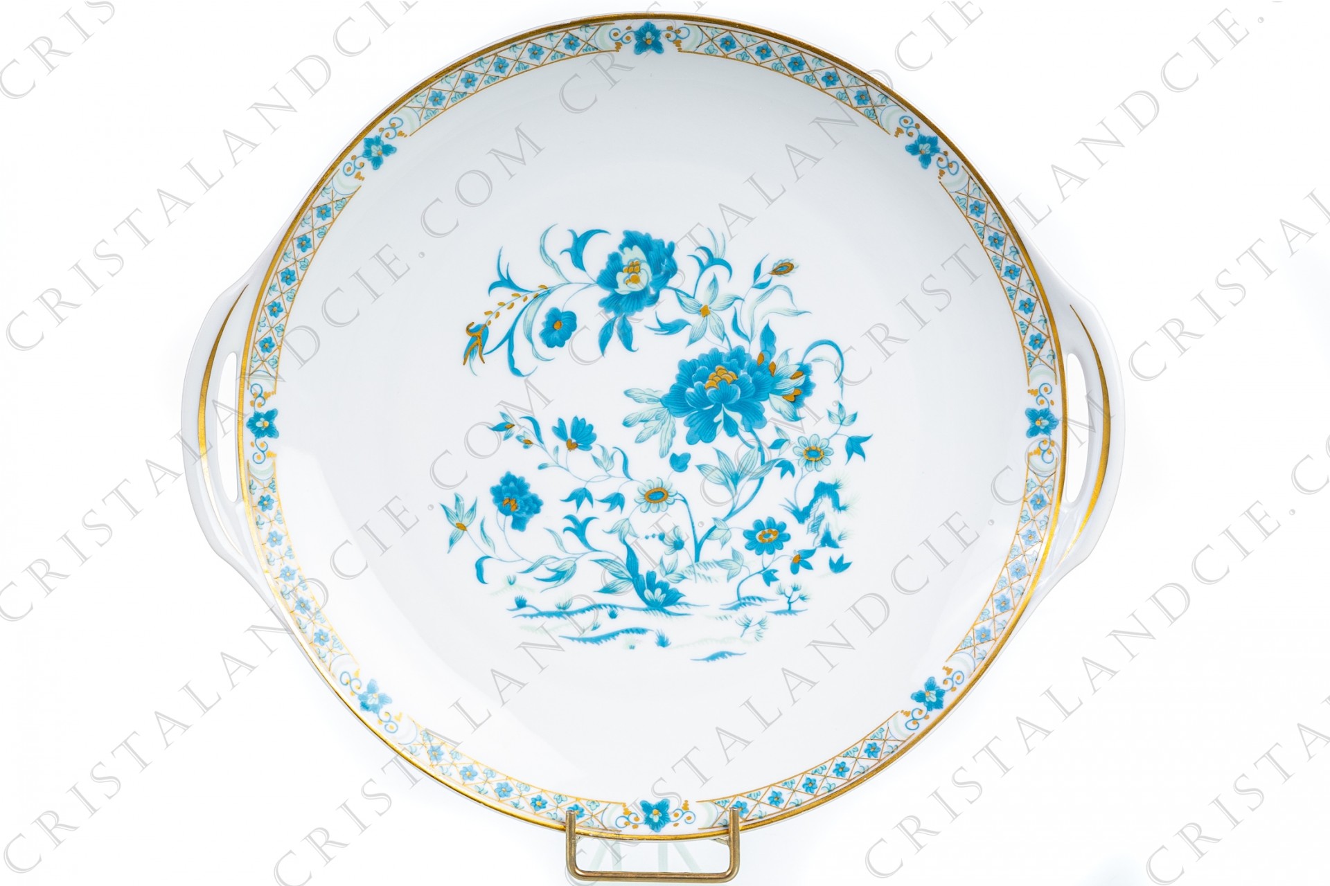 Cake dish in Limoges china by Haviland, pattern Nankin decorated with blue and gold flowers.