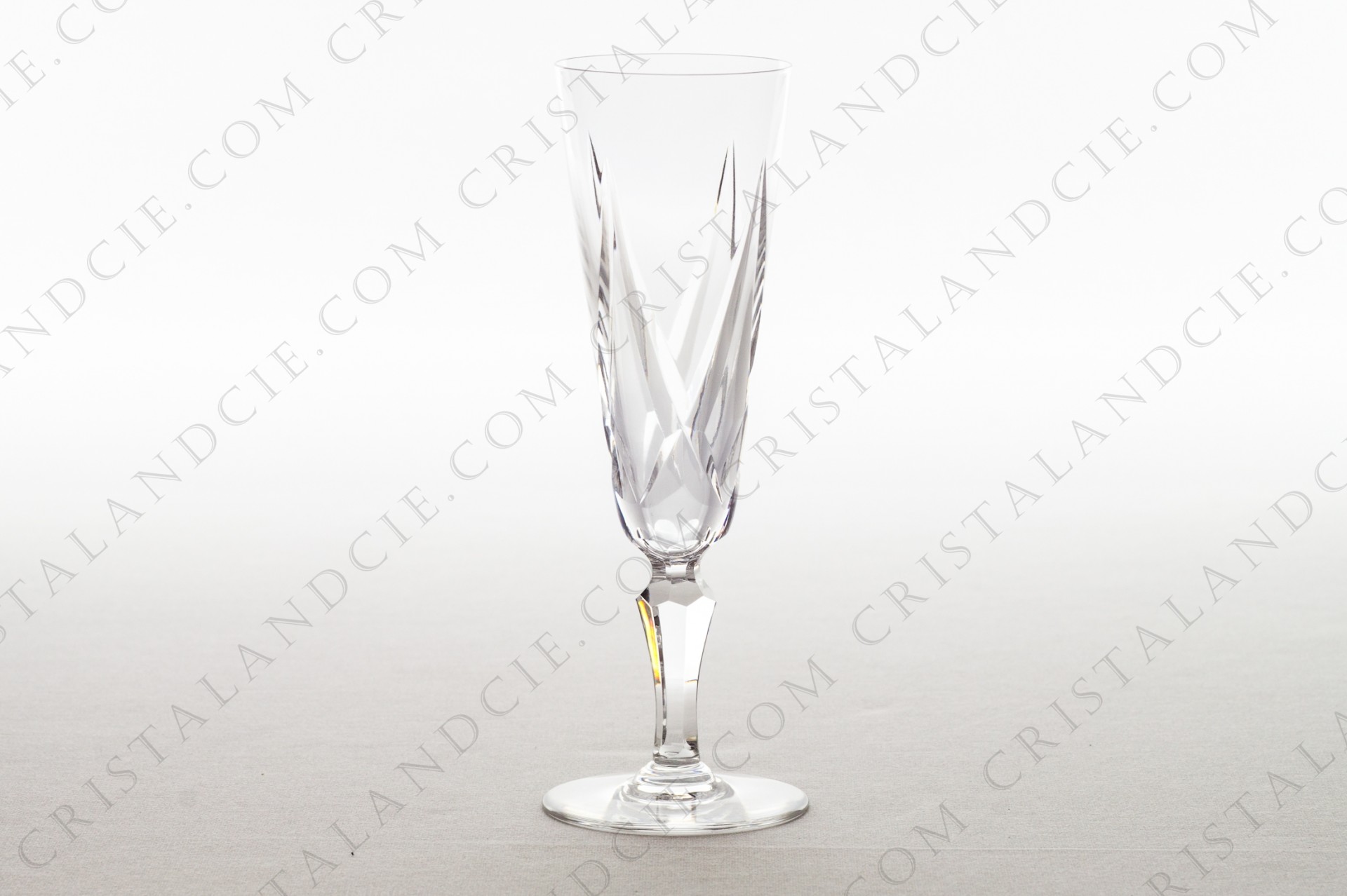 Champagne flute in crystal by Saint-Louis pattern Ardèche with a carved decor and a faceted foot.