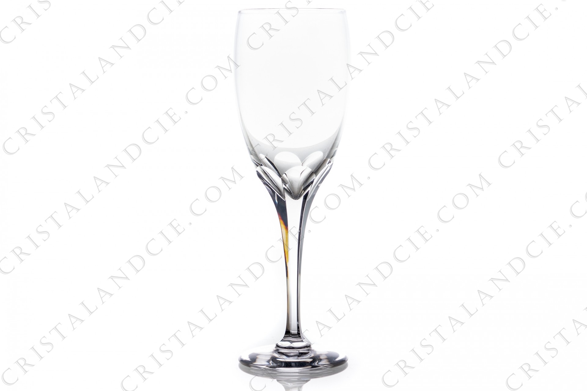 Champagne flute in crystal by Lalique pattern Tuileries with the stem is decorated with flatcuts. Pattern created by Marc Lalique in 1965. Stamped.