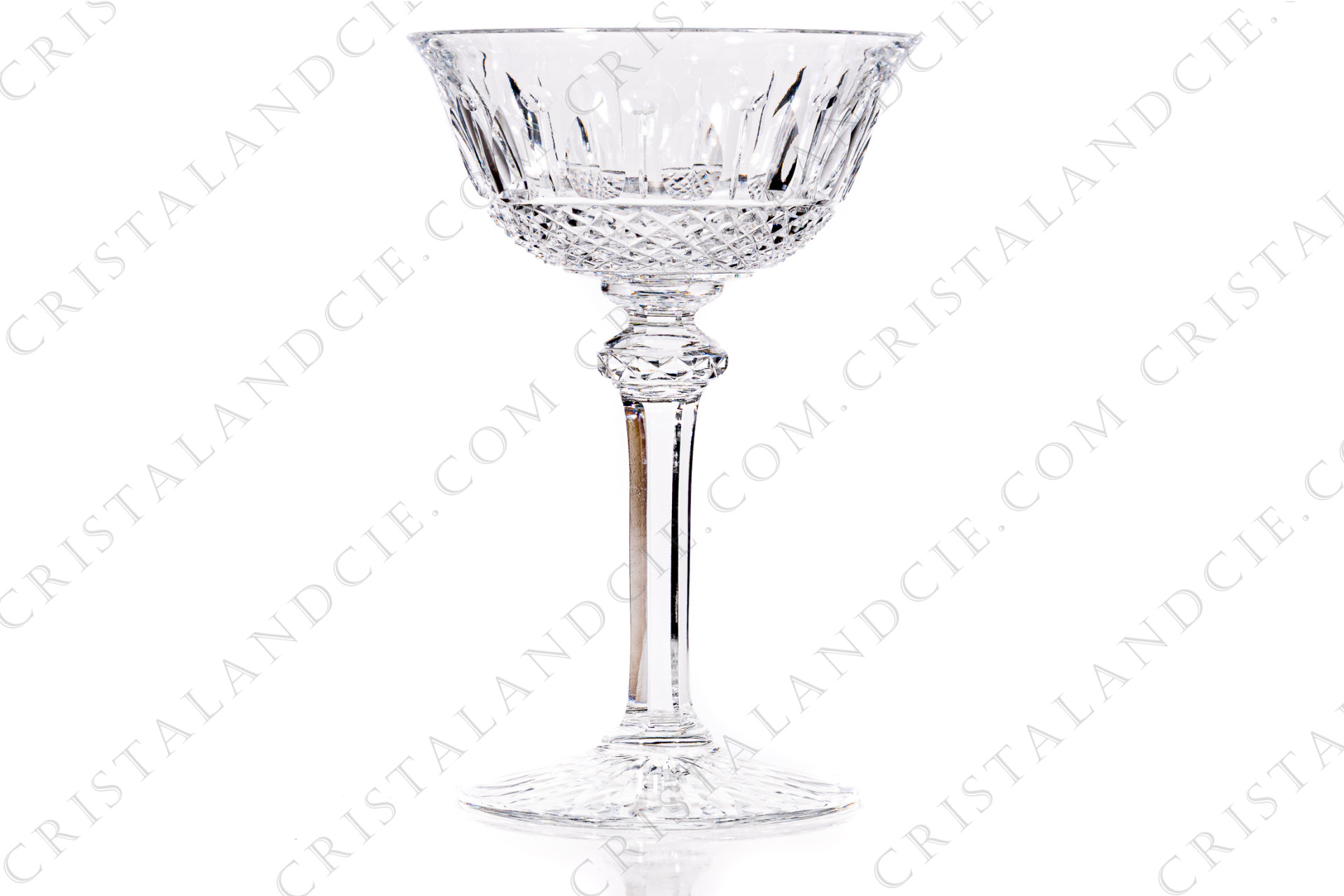 Champagne saucer in crystal by Saint-Louis pattern Tommy with an important cut pattern. Pattern created in 1928. Stamp very few visible.