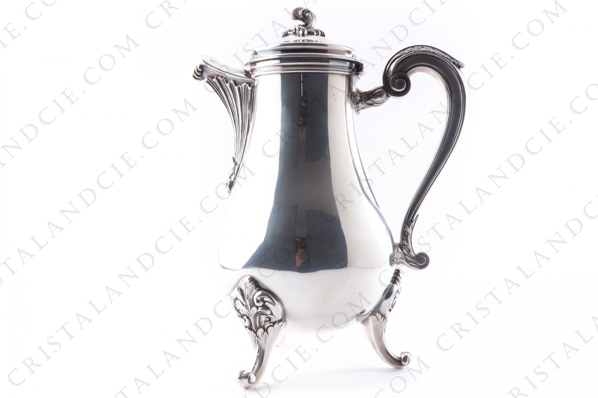 Coffee pot in platted silver by Christofle pattern Marly decorated with acanthus leaves.