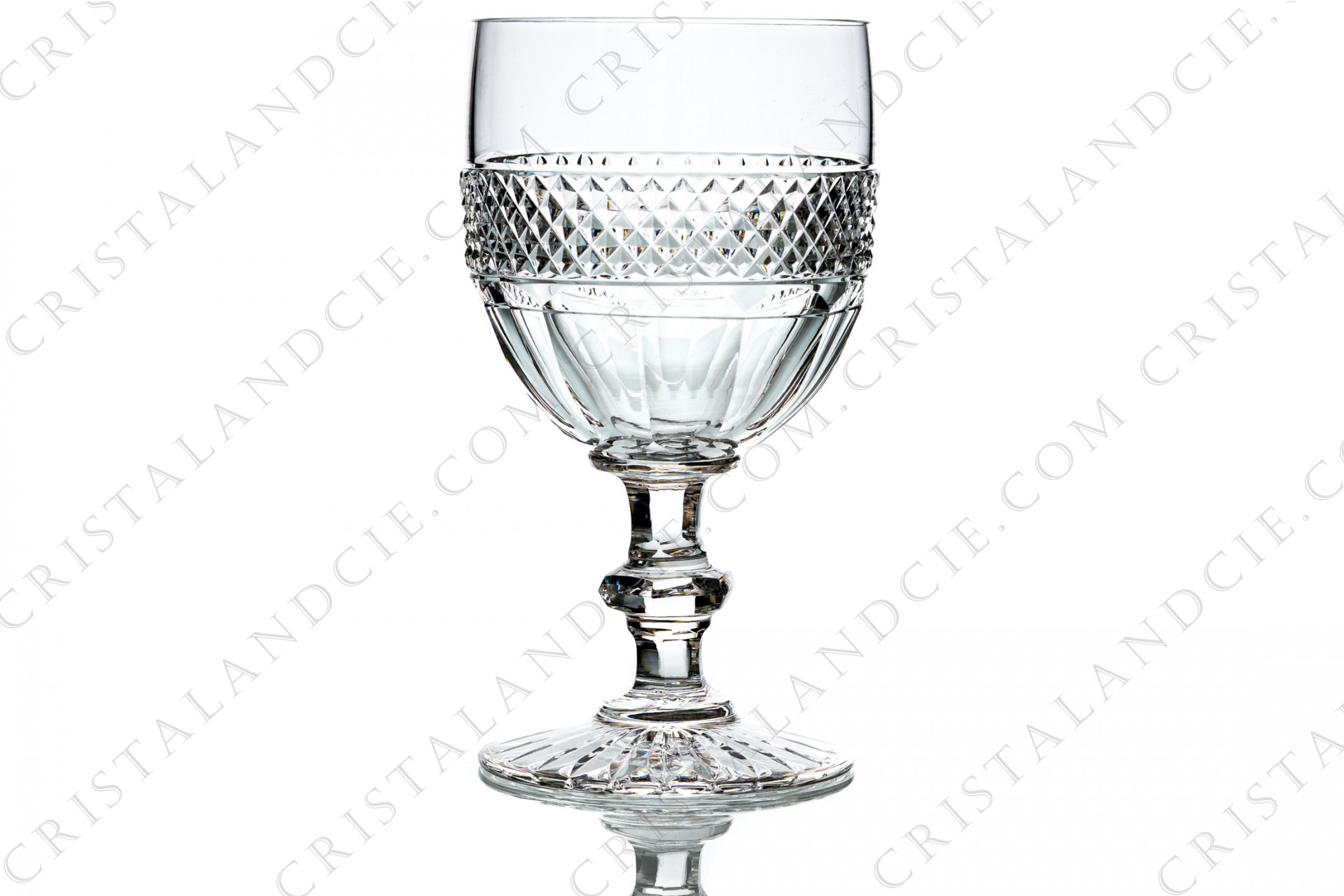 Towering commemoration glass in crystal by Saint-Louis pattern Trianon, with the gob is decorated with a Diamond tips frieze, stem with a ring. Pattern created in 1834. Too old to be stamped.