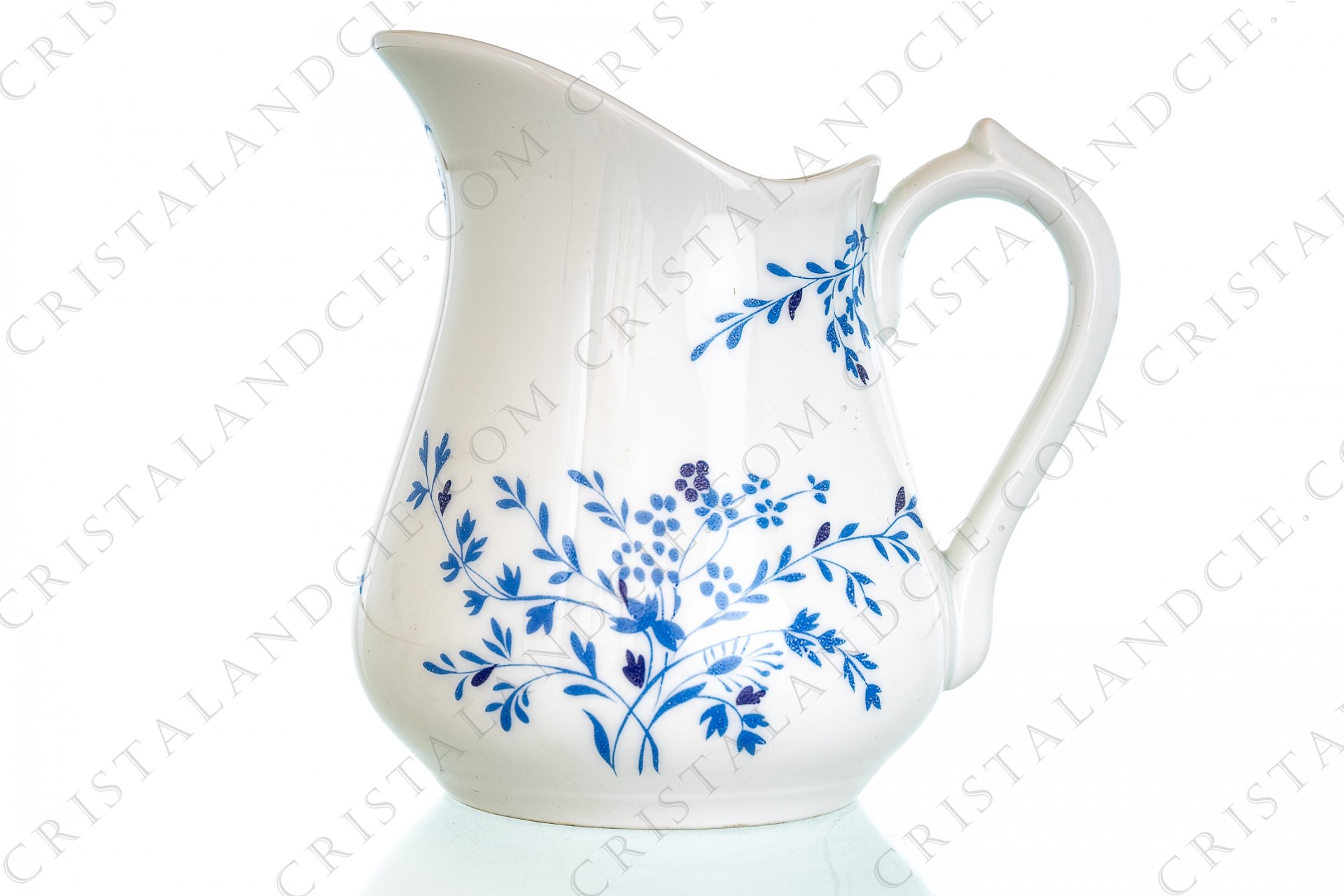 Creamer in Limoges china by L'Ancienne Manufacture Royale (Bernardaud) whose the pattern of blue flowers has been created by the great society of home linens D. Porthault.