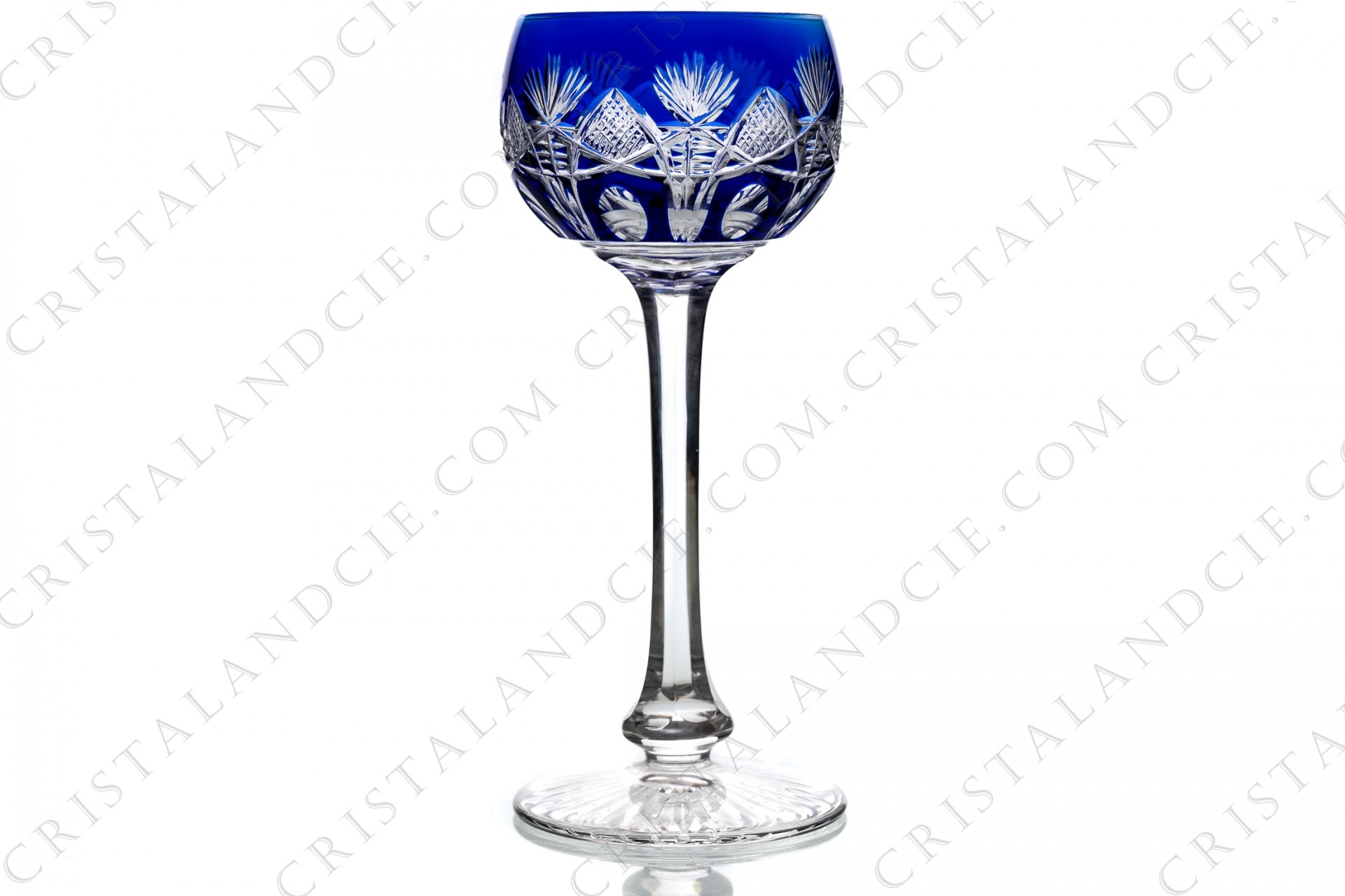 Rhine wine glass hock in dark blue double layer crystal by Saint-Louis pattern Niepce with an important cut pattern.Too old to be stamped.