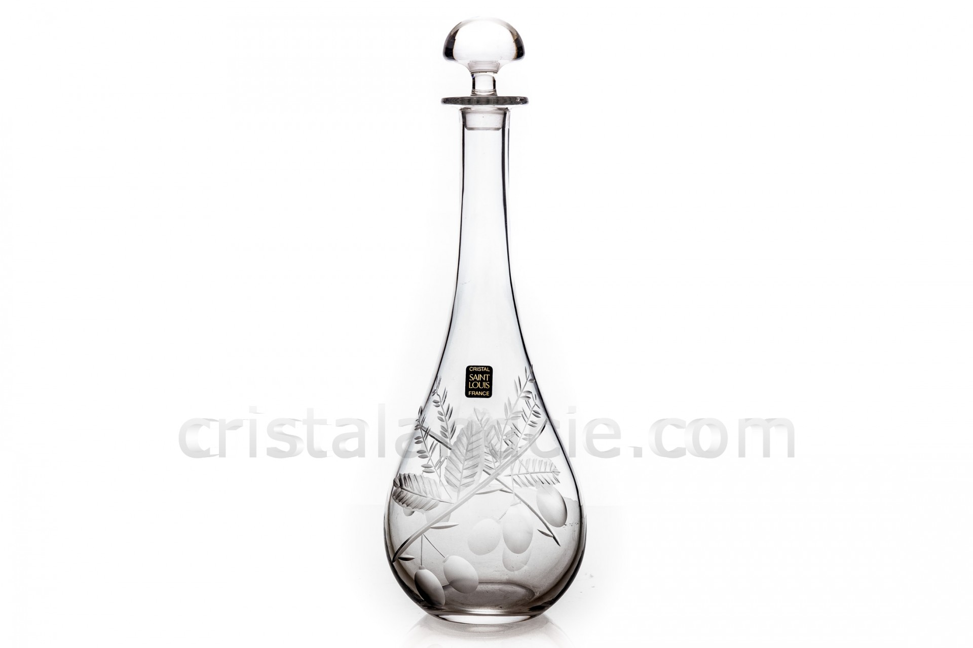 Decanter in crystal by Saint-Louis with a cut pattern of cherry plum. Frosted bottom so not stamped.