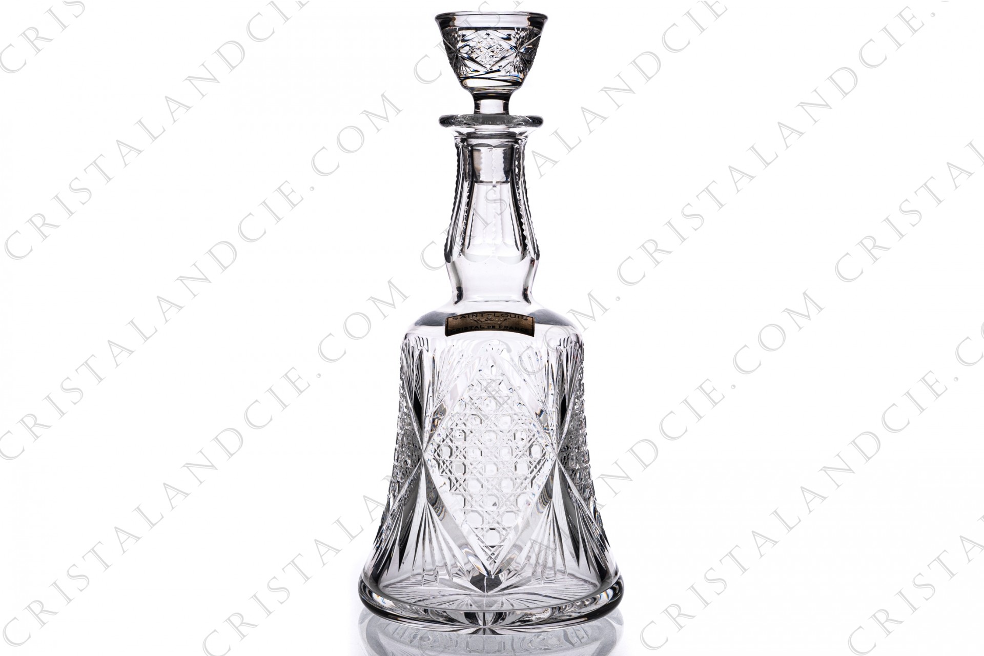 Decanter in crystal by Saint-Louis pattern Vologne with an important engraved pattern. Stamped, sticker Saint-Louis.