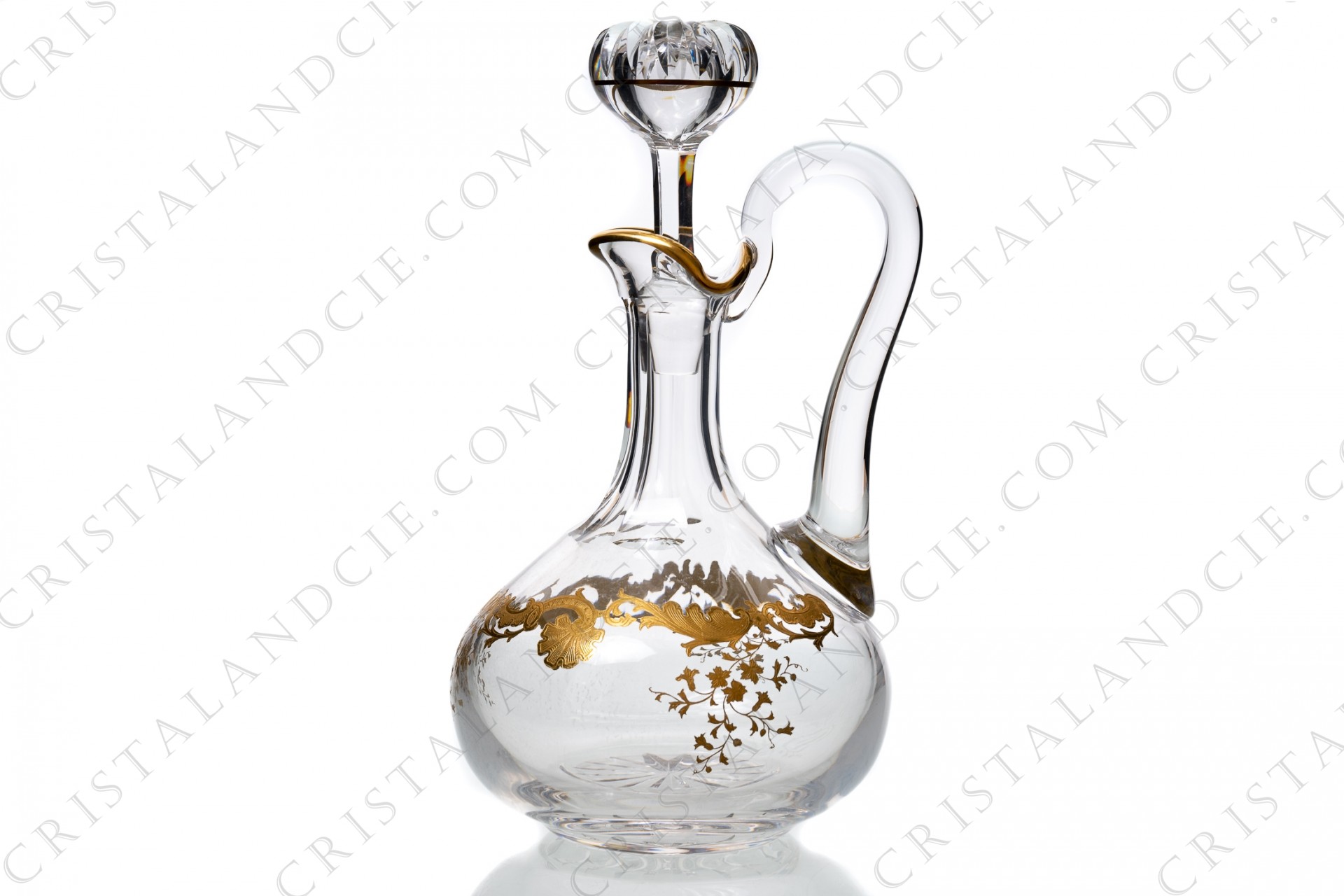 Decanter wine in crystal by Saint-Louis pattern Massenet or decorated with acanthus leaves and flowers in gold inlays. Stamped.