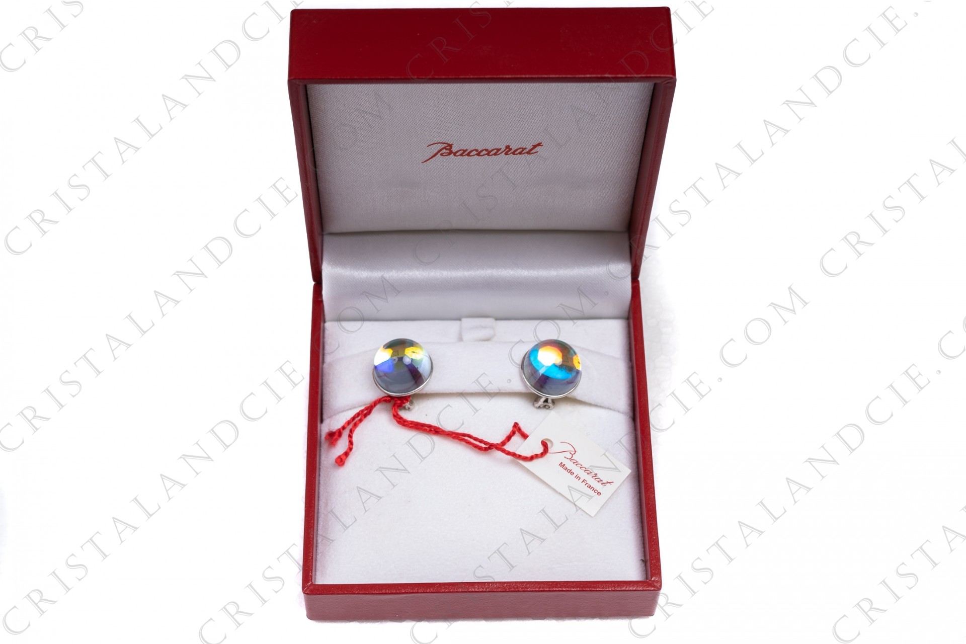 Pair of clips earrings in crystal by Baccarat pattern Eclipse iridescent. Frame in sterling silver 925/1000e. Stamped. Sold in their original box.