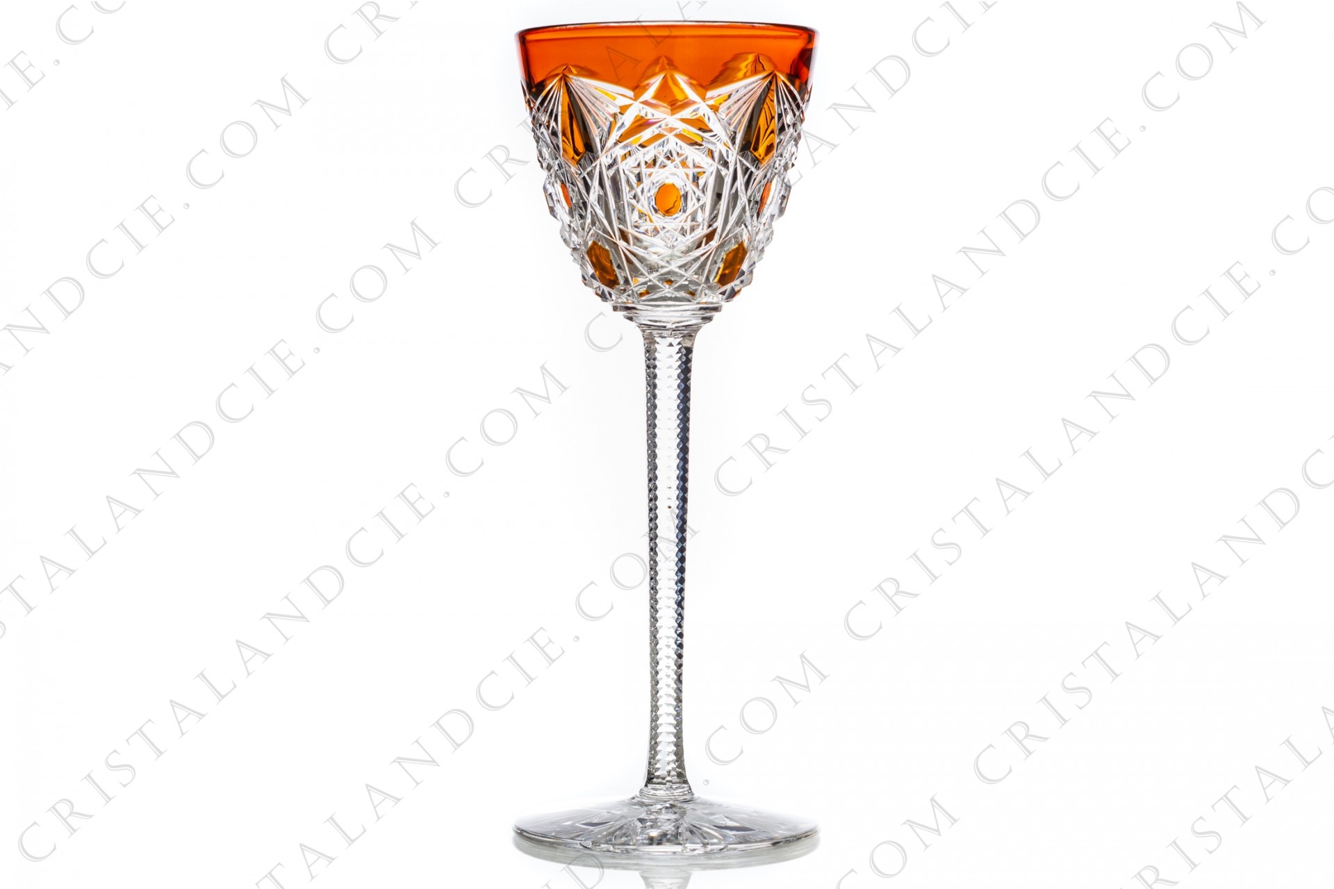 Rhine wine glass hock in orange double layer crystal by Baccarat pattern Lagny with an important cut pattern on the belly and the foot. Pattern produced from 1912 to 1994.