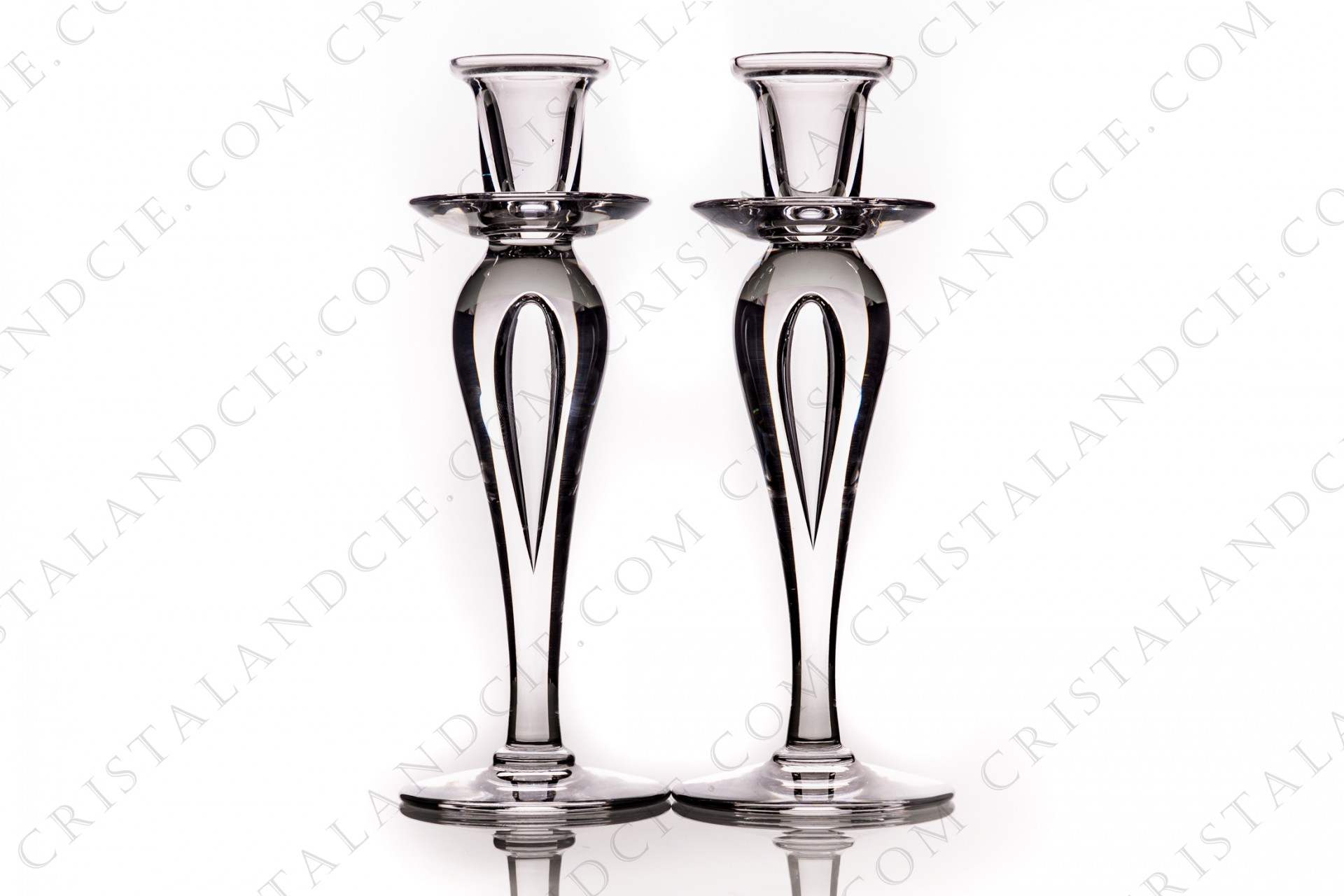 Pair of candlesticks in crystal by Saint-Louis pattern Sirius with an air bubble in the stem.