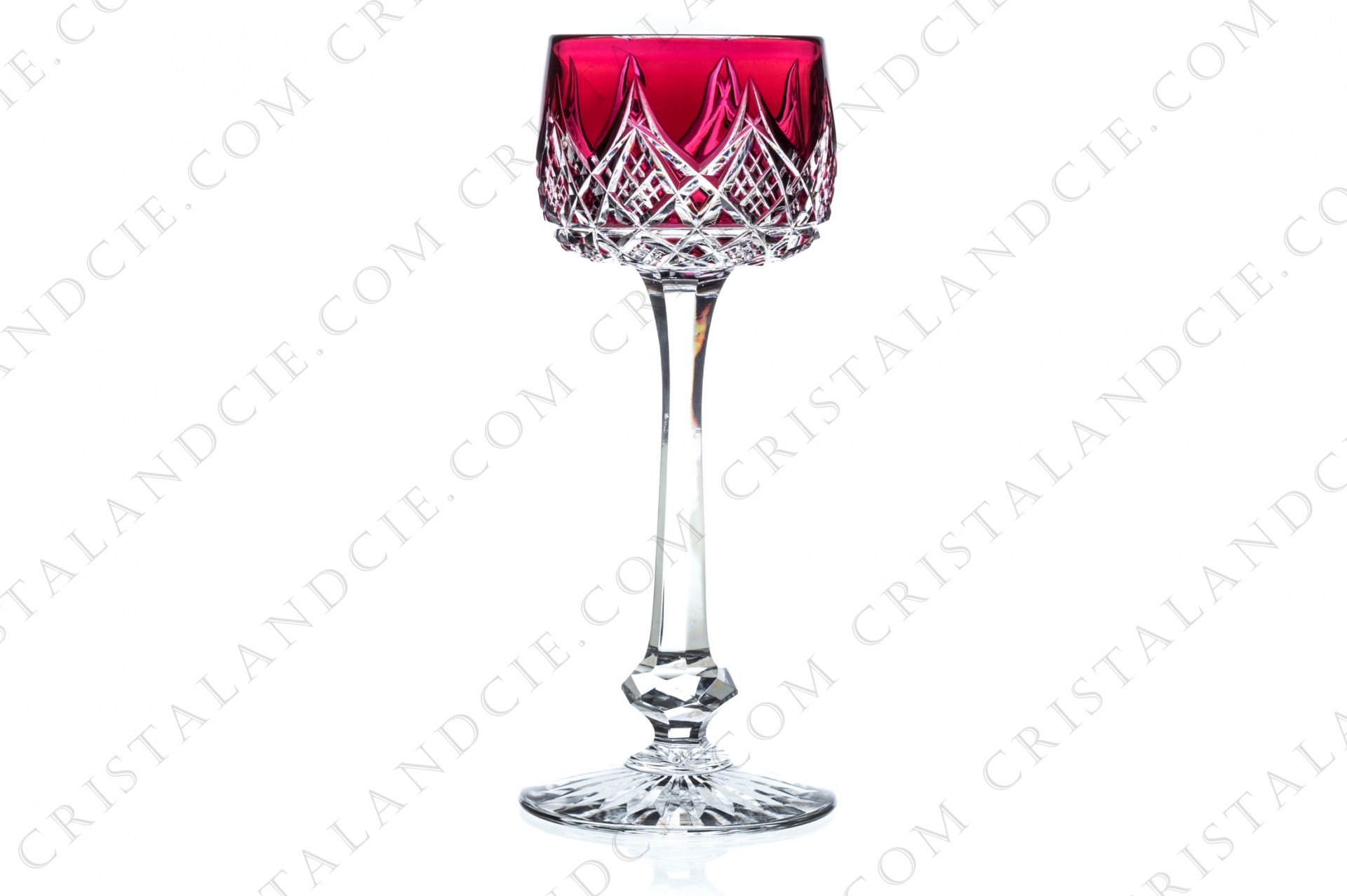 Rhine wine glass hock in red double-layered crystal by Baccarat pattern Colbert with an important carved decor. Pattern produced from 1902 to 2002.