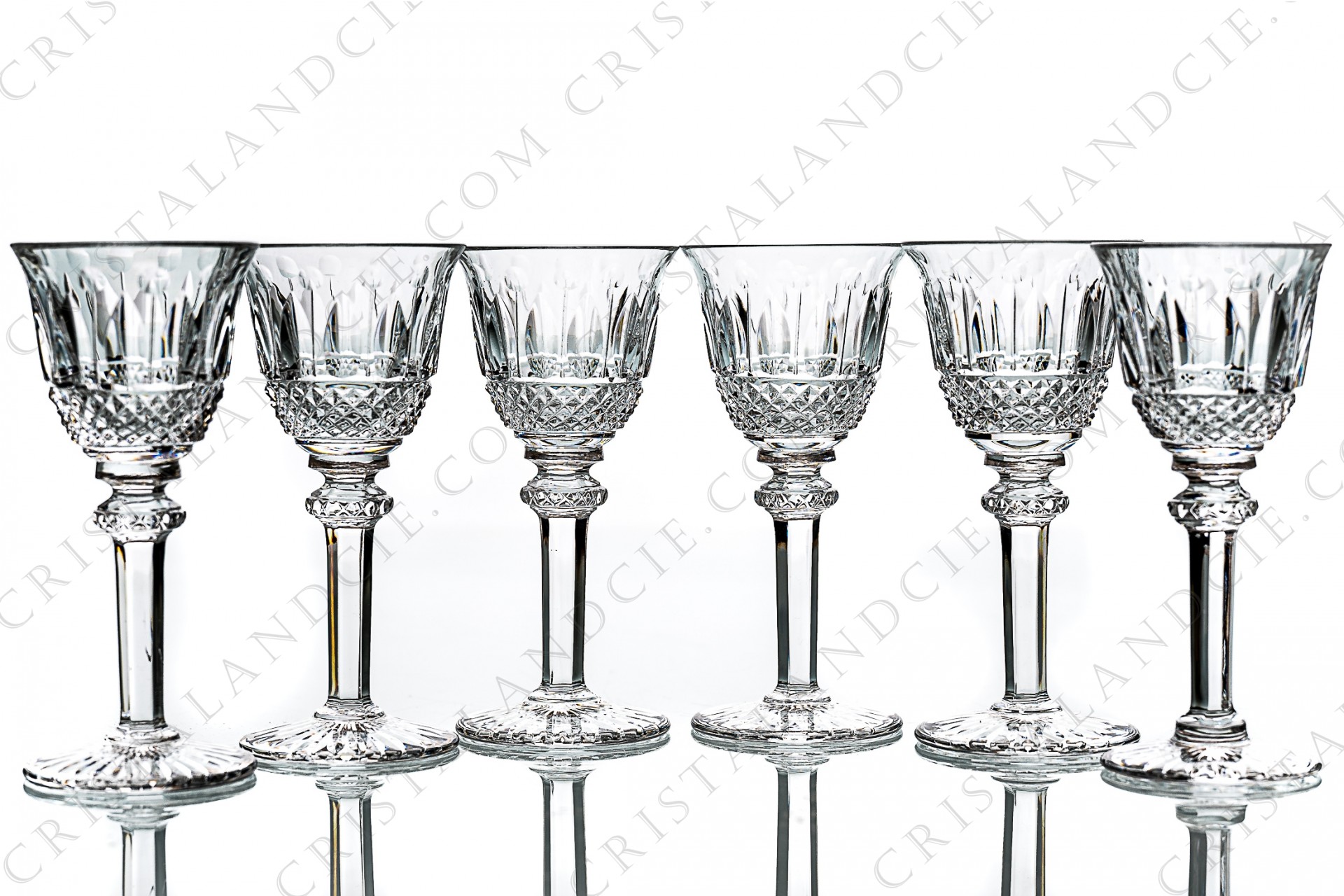Set of six cordial glasses in crystal by Saint-Louis pattern Tommy with an important cut pattern. Pattern created in 1928. Stamped few visible.