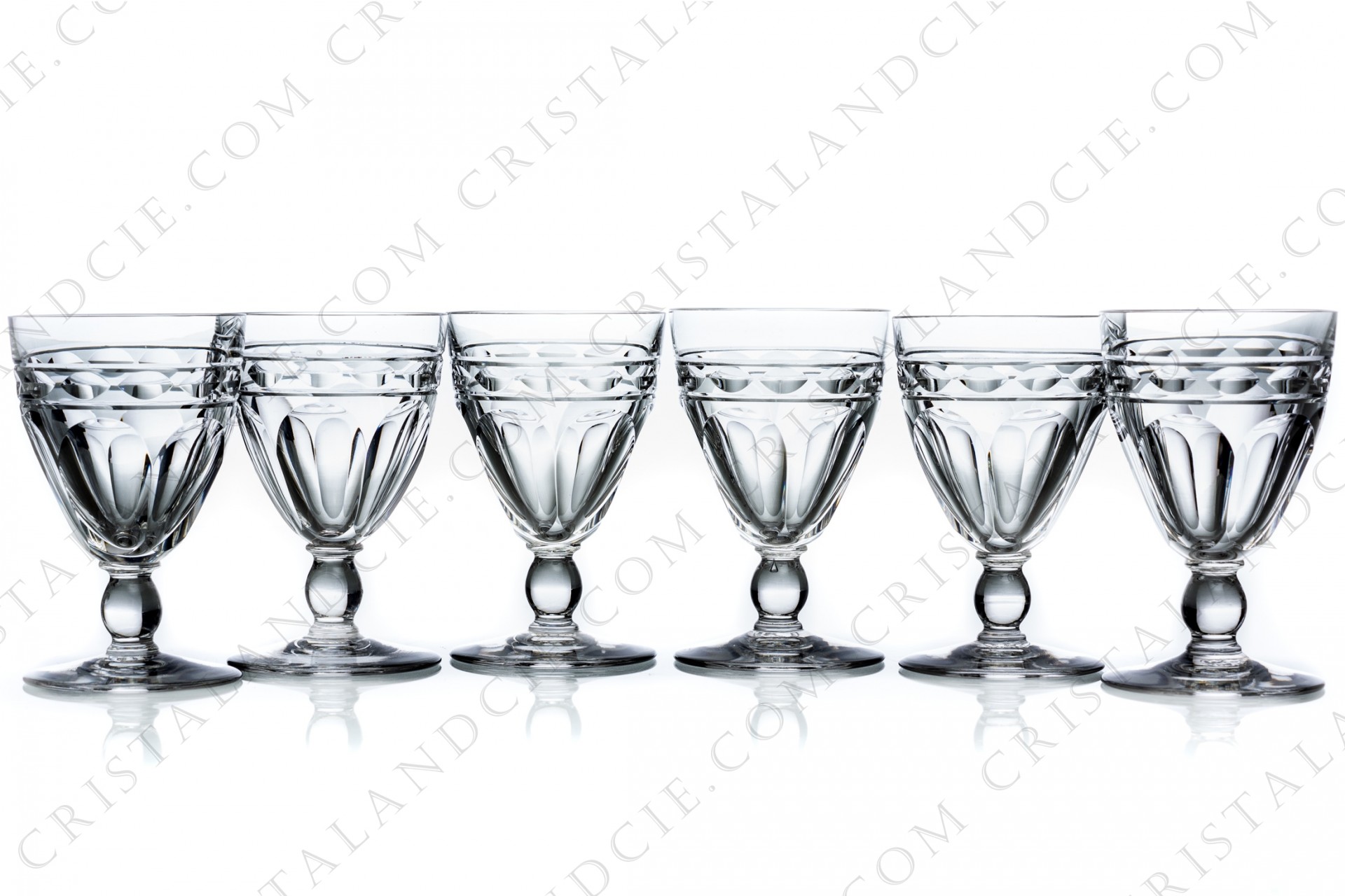 Set of six Sherry glasses n°5 in crystal by Baccarat pattern Campsegret decorated with flatcut and a frieze. Stamped.