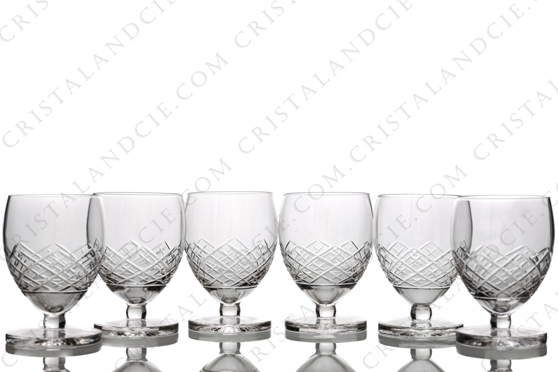Set of six water glasses n°2 in crystal by Saint-Louis pattern Florian cut 539 with a cut pattern and a star on the bottom. Dating from the 1940's. Too old to be stamped.