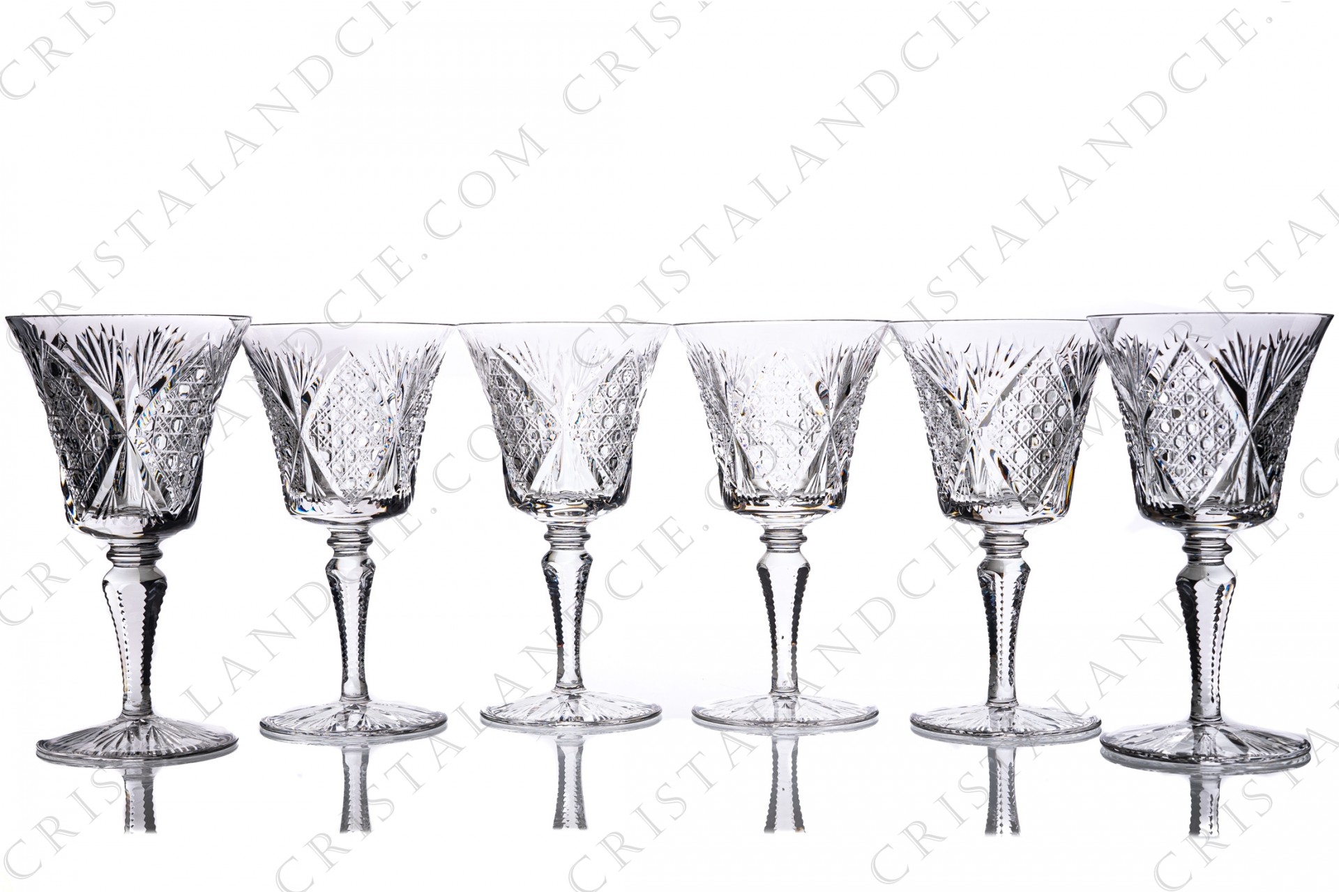 Set of six water glasses n°2 in crystal by Saint-Louis pattern Vologne with an important cut pattern. Too old to be stamped.