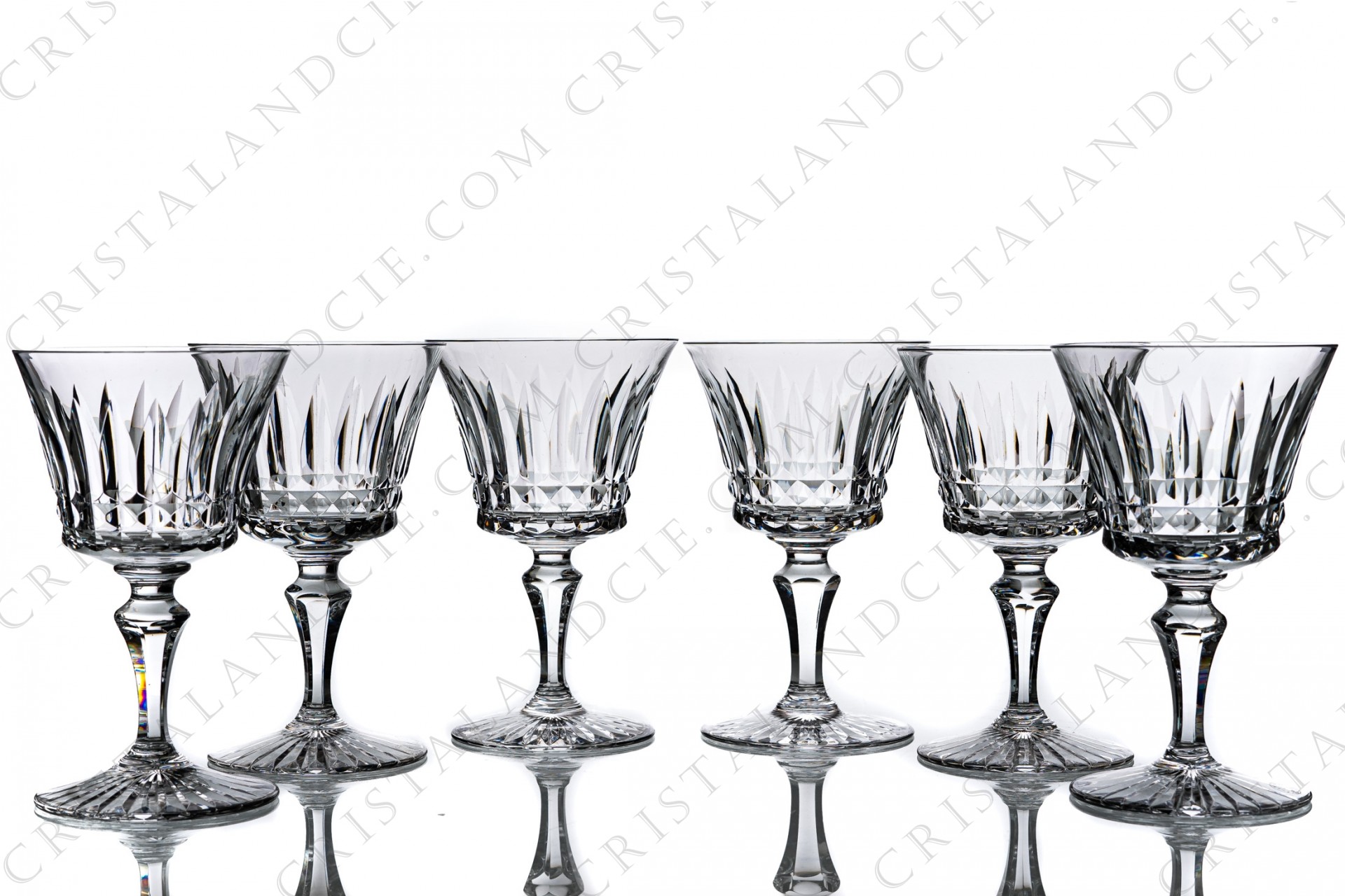 Set of six wine glasses n°3 in crystal by Baccarat pattern Buckingham with an important cut pattern on the gob and the foot. Pattern produced from 1939 to 1990. Stamped.