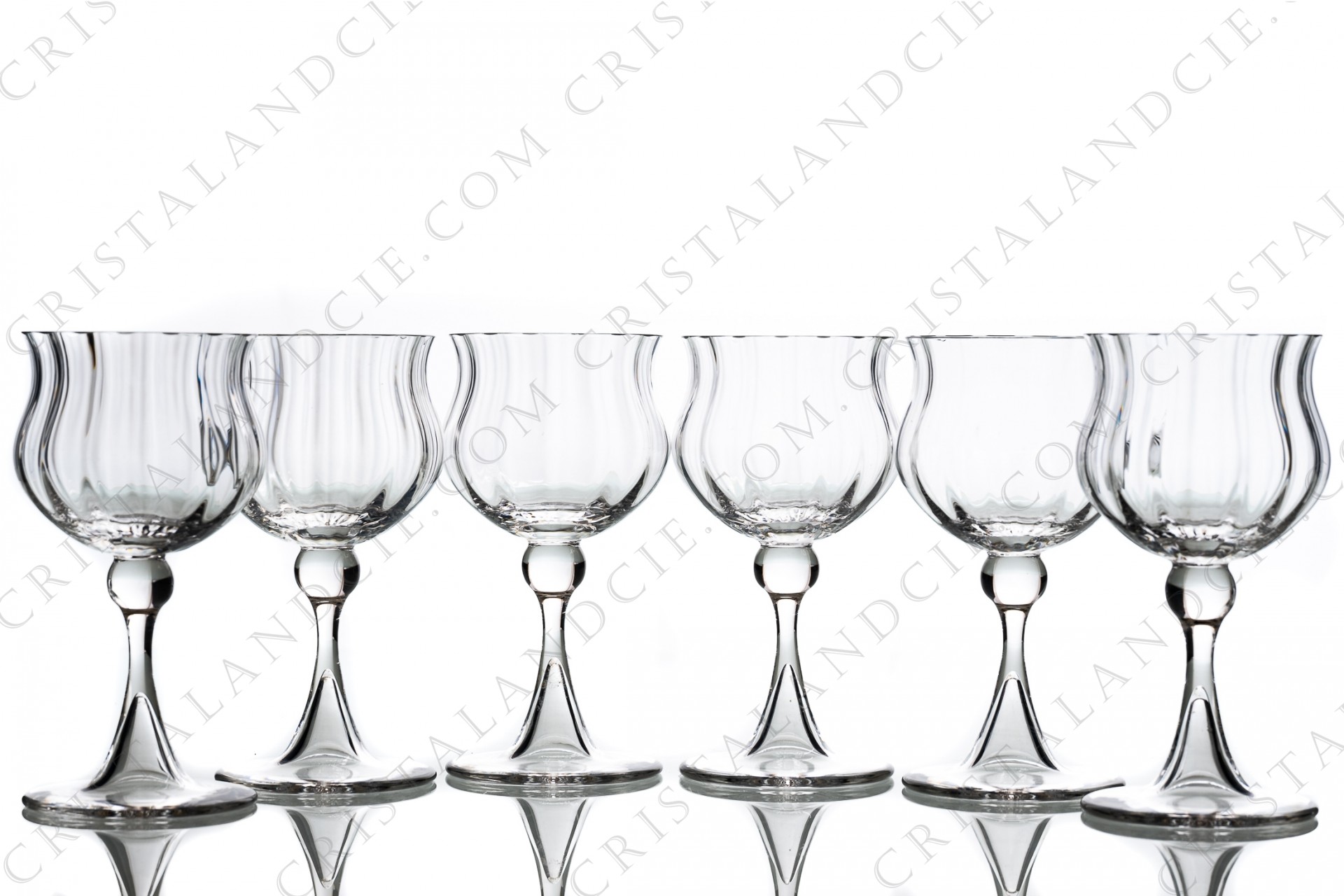 Set of six wine glasses n°3 in crystal by Daum pattern Verone with a parison decorated with venetians cuts, with a hollow foot. Stamped.