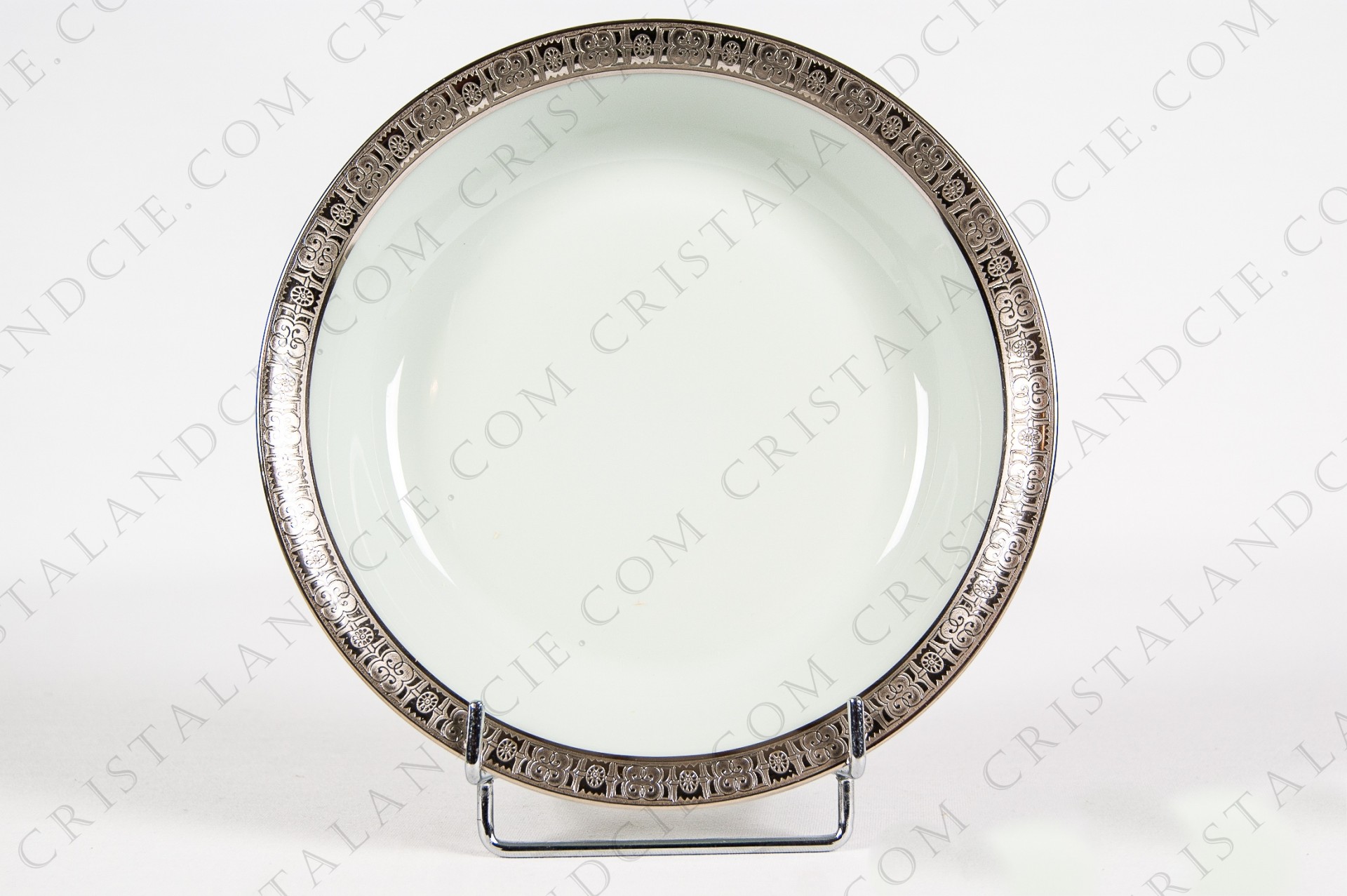 Soup plate in Limoges china by Haviland and Parlon pattern Macao, celadon paste decorated with platinum inlays .