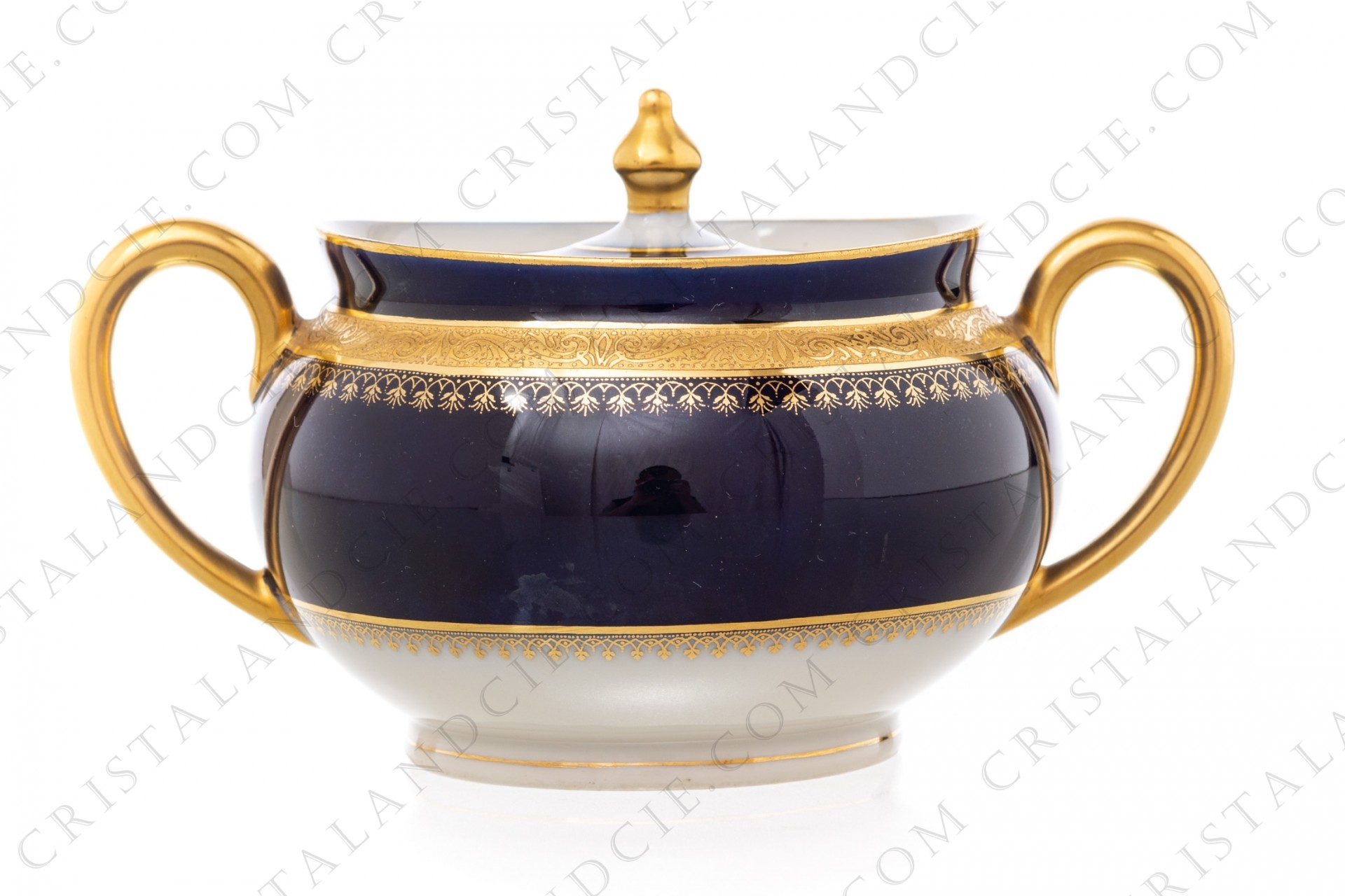 Sugar bowl in china of Limoges by Theodore Haviland decorated with a gold inlays arabesques frieze on a cobalt blue background. Dating from the 1920's.
