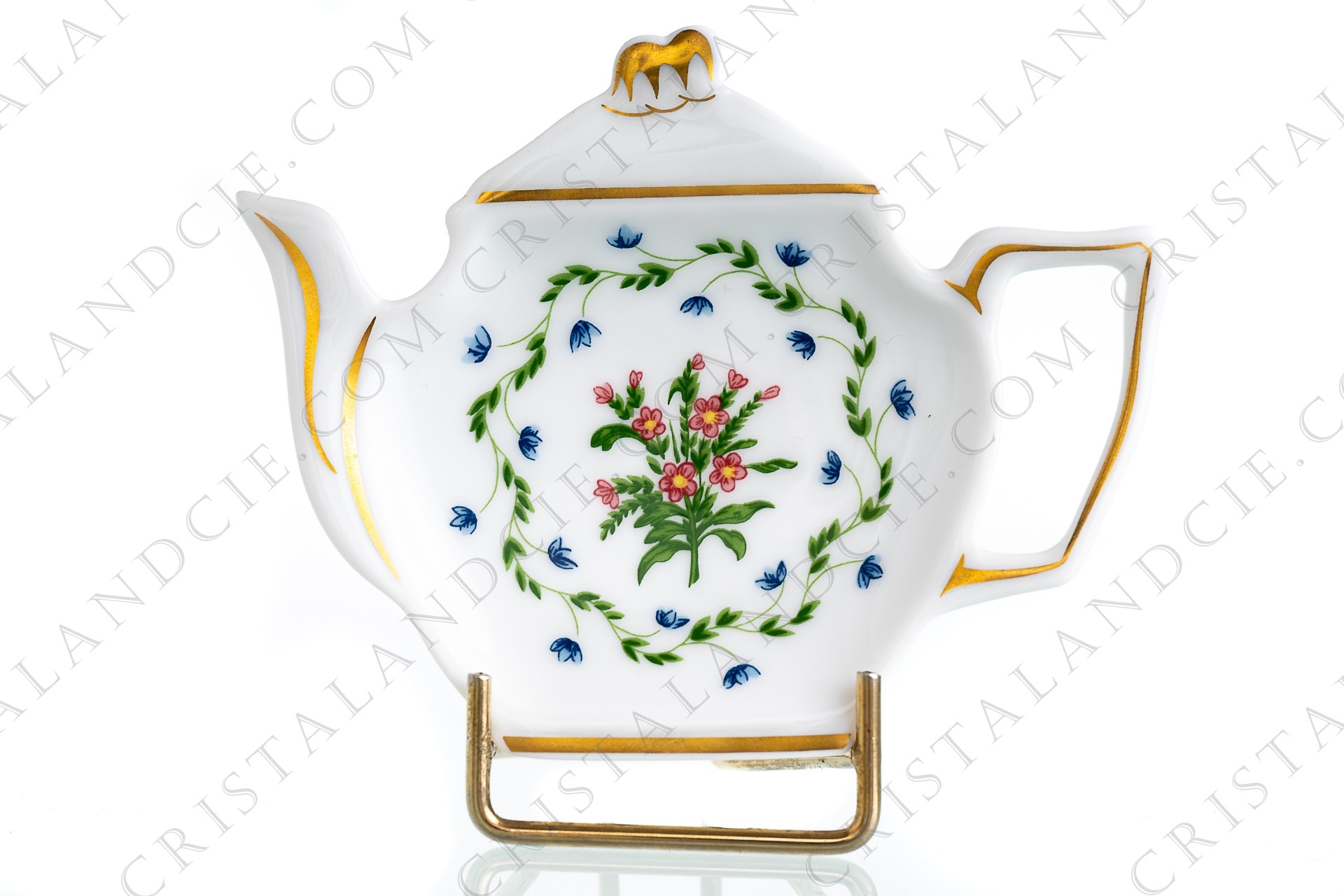 Tea bag holder in Limoges china by Raynnaud pattern La Fayette, decorated with a bouquet of flowers.