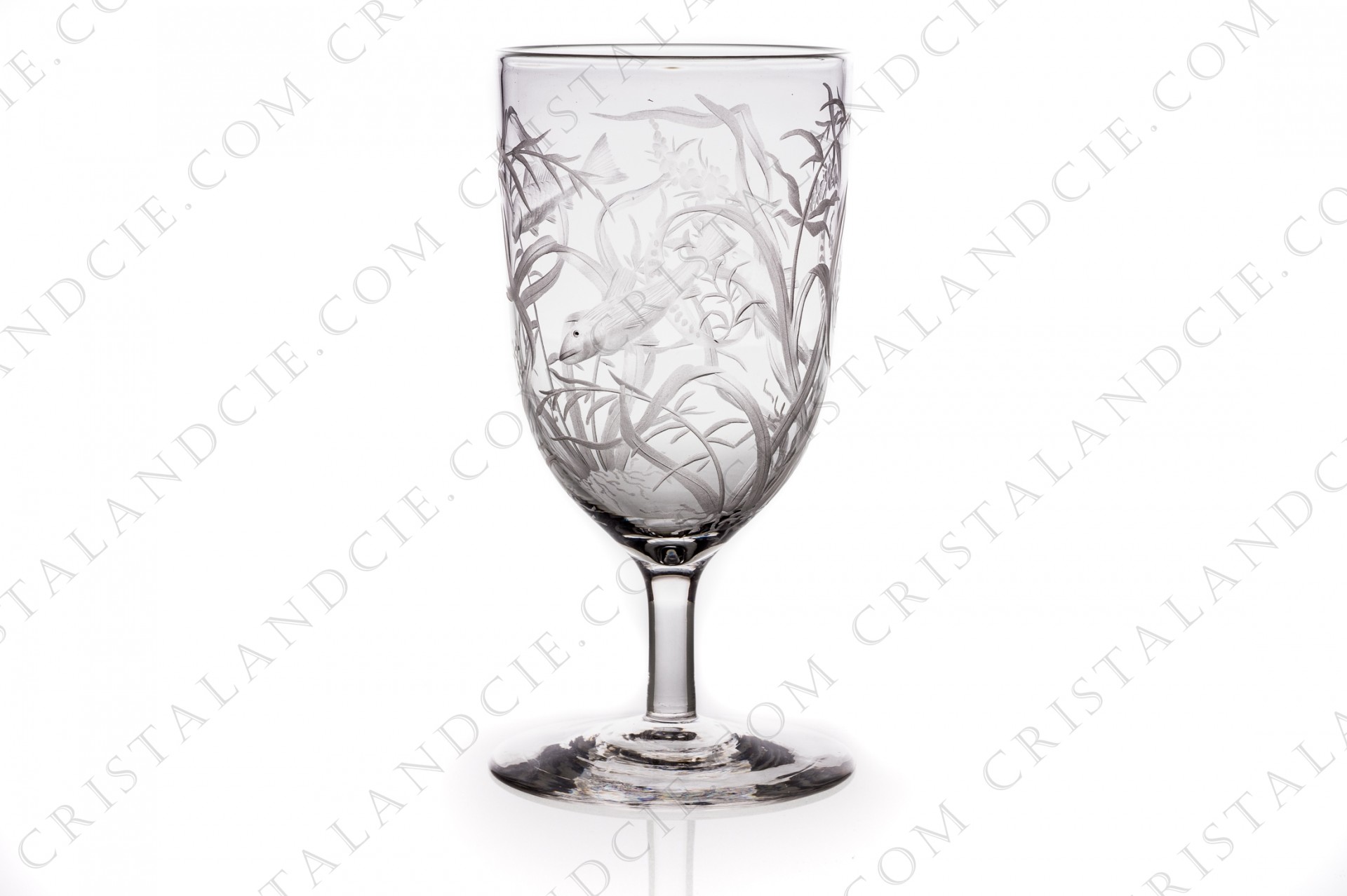 Tumbler with foot in crystal with an important hand-engraved pattern of seaweeds and fishes. Quality engraving, maybe Baccarat or Saint-Louis. From the end of the 19th- beginning of the 20th century.