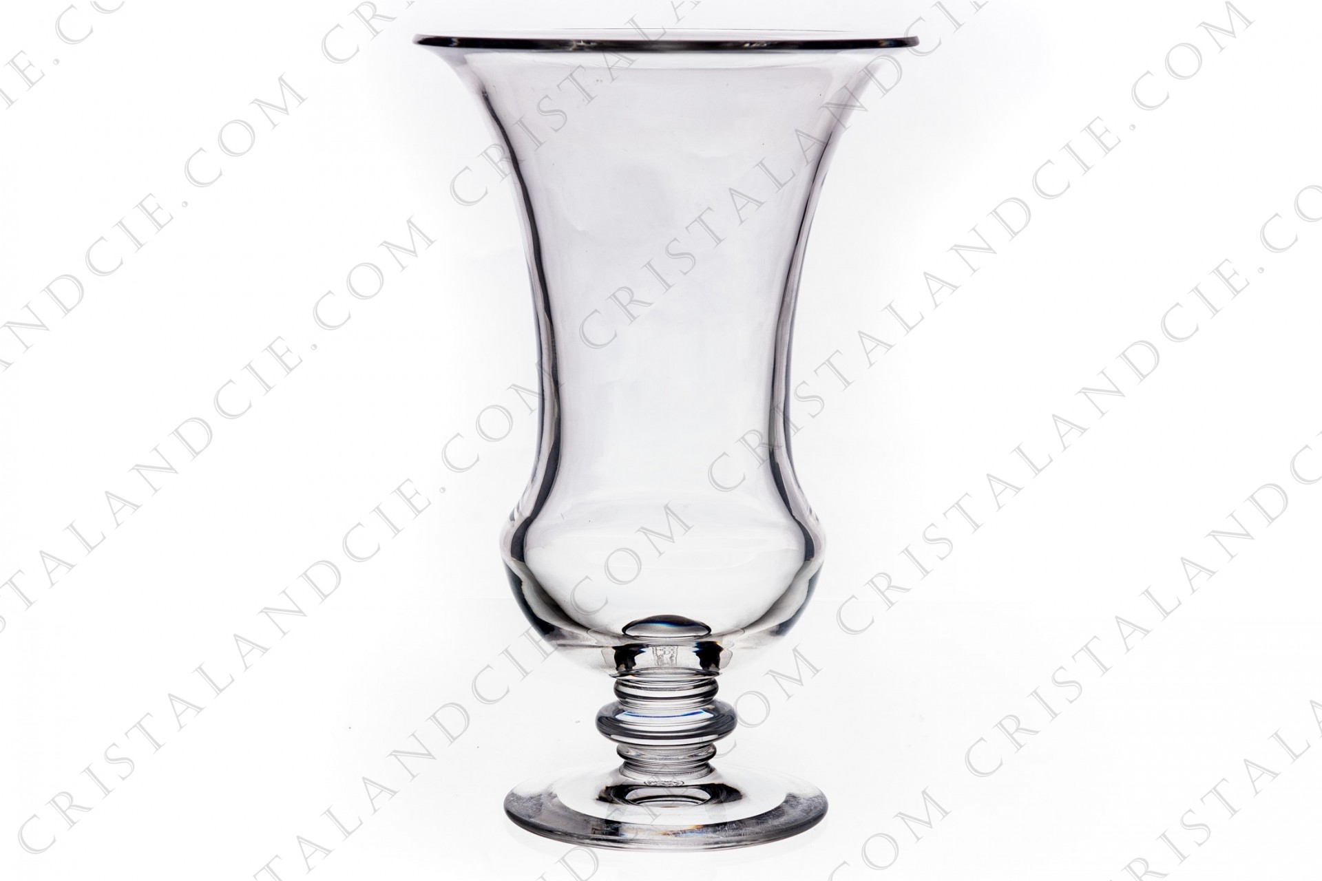 description: Vase in crystal by Baccarat pattern Angélique decorated with a ring on the stem. Stamped. Many scratches on the bottom and on the belly. Height: 10,75 in Diameter: 6,85 in.