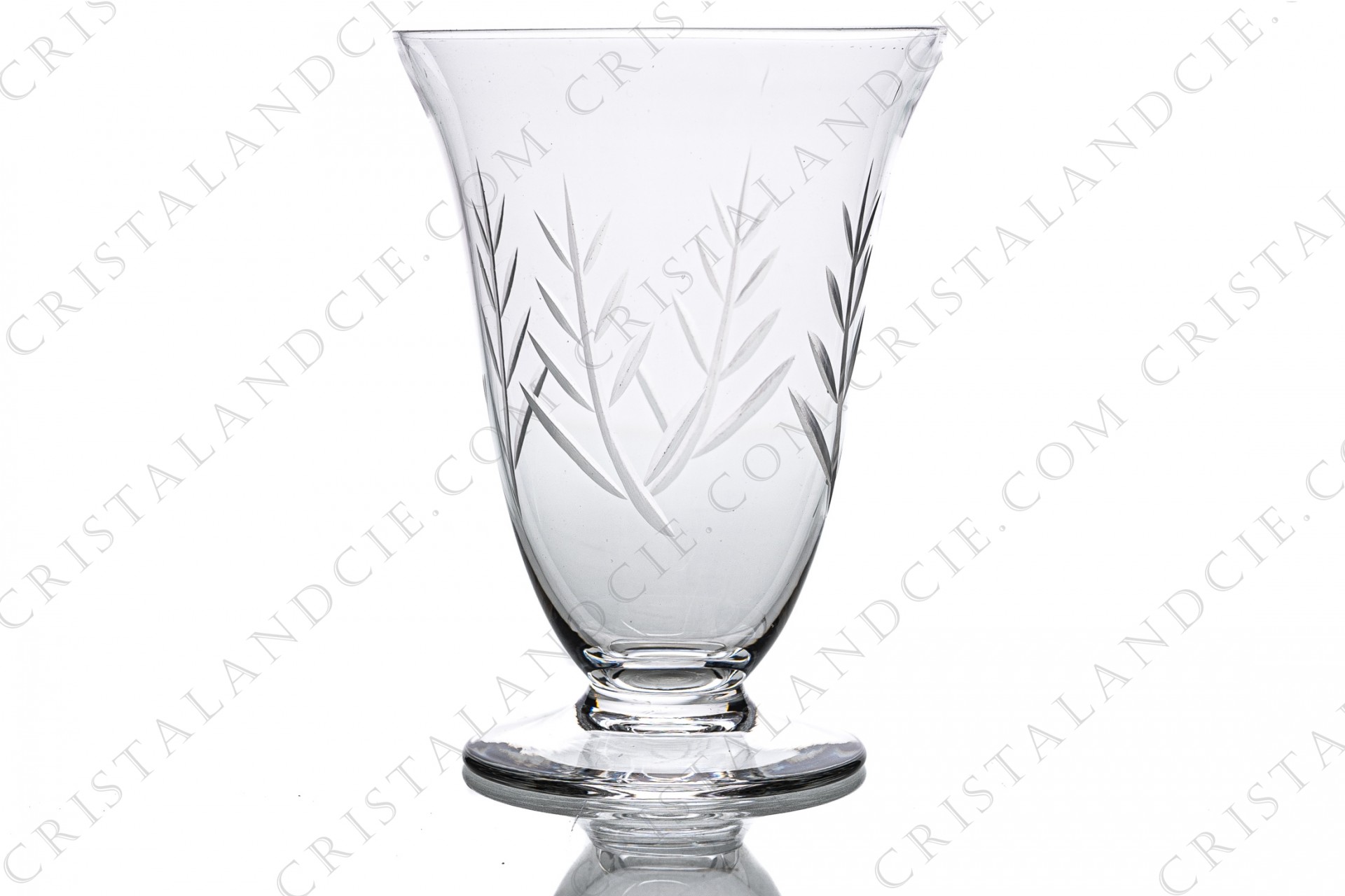 Water glass n°2 in crystal by Daum decorated with engraved branch. Stamped.