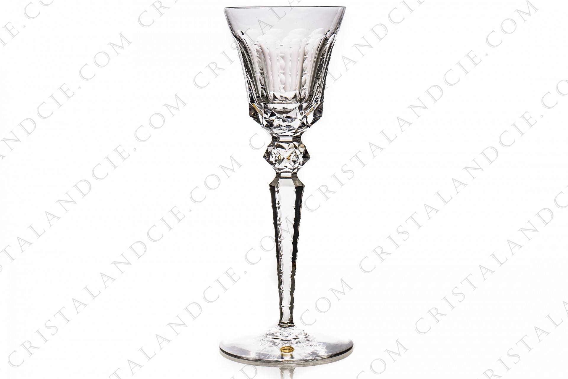American water glass n°1 in crystal by Saint-Louis pattern Excellence with a richly pattern of engraved flat cuts and diamond tips. Too old to be stamped, sticker Saint-Louis.