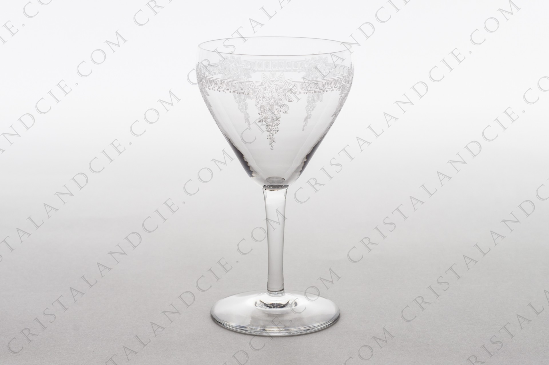 Watergoblet n°2 in crystal by Saint-Louis pattern Coli, with an incised decor of frieze and bouquet of flowers. From the 1930's. Too old to be signed.
