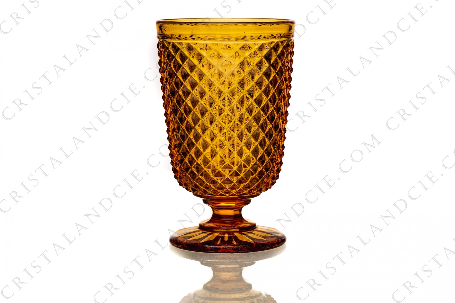Watergoblet in amber molded crystal by Baccarat decorated with diamond tips and a golden strip. Too old to be stamped.