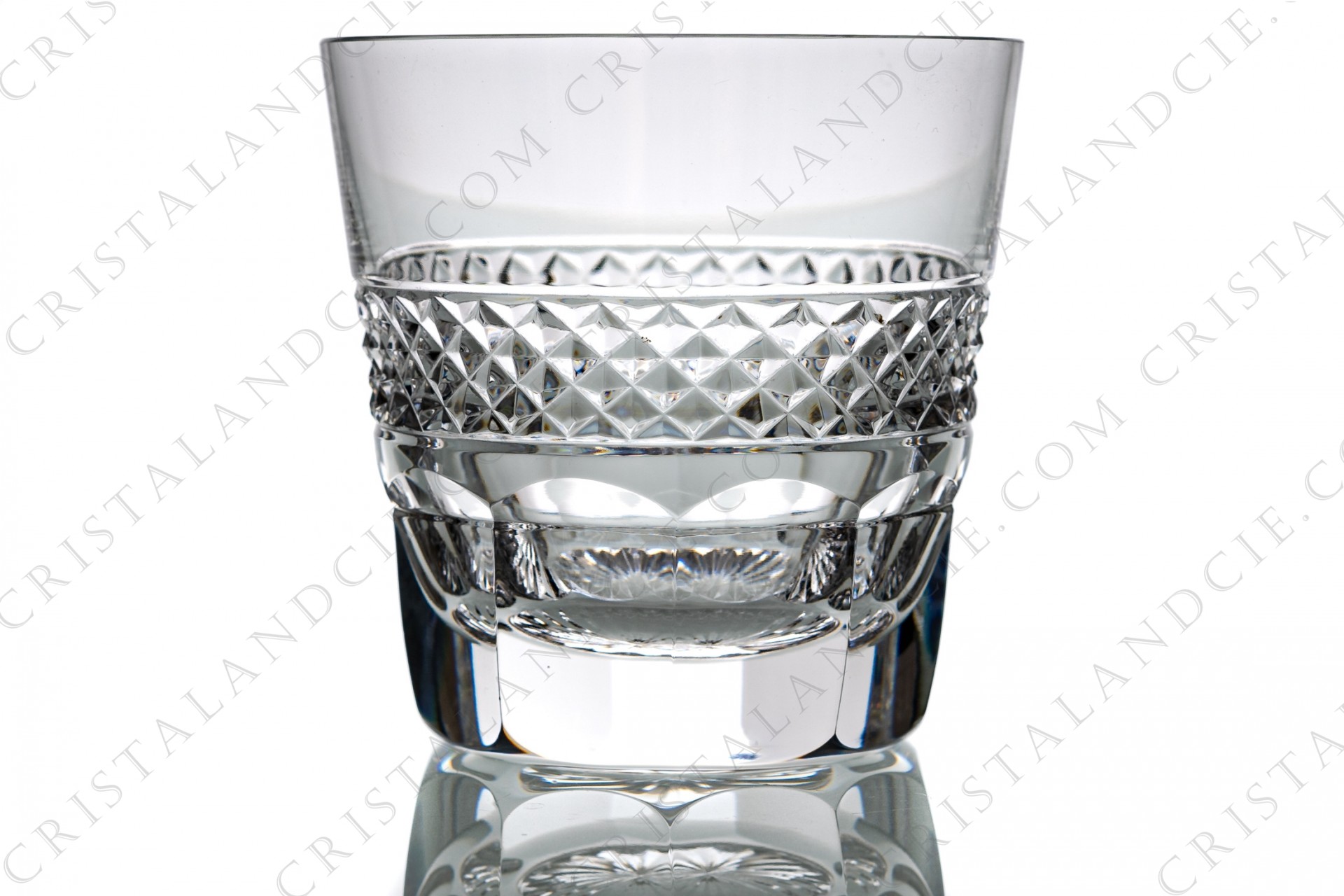 Whisky glass n°3 in crystal by Saint-Louis pattern Trianon Old fashion regular. The gob is decorated with flat cut and with a Diamond tips frieze. Pattern created in 1834, still made by Saint-Louis. Stamped.