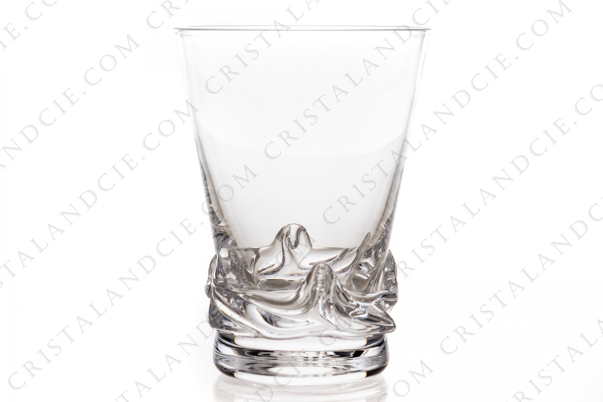Wine glass n°3 in crystal by Daum pattern Sorcy decorated with waves on the base. Pattern created in 1950. Stamped. Rares tiny scratches. Mean height: 3,82 in Mean diameter: 2,83 in Mean capacity: 5,41 fl oz.