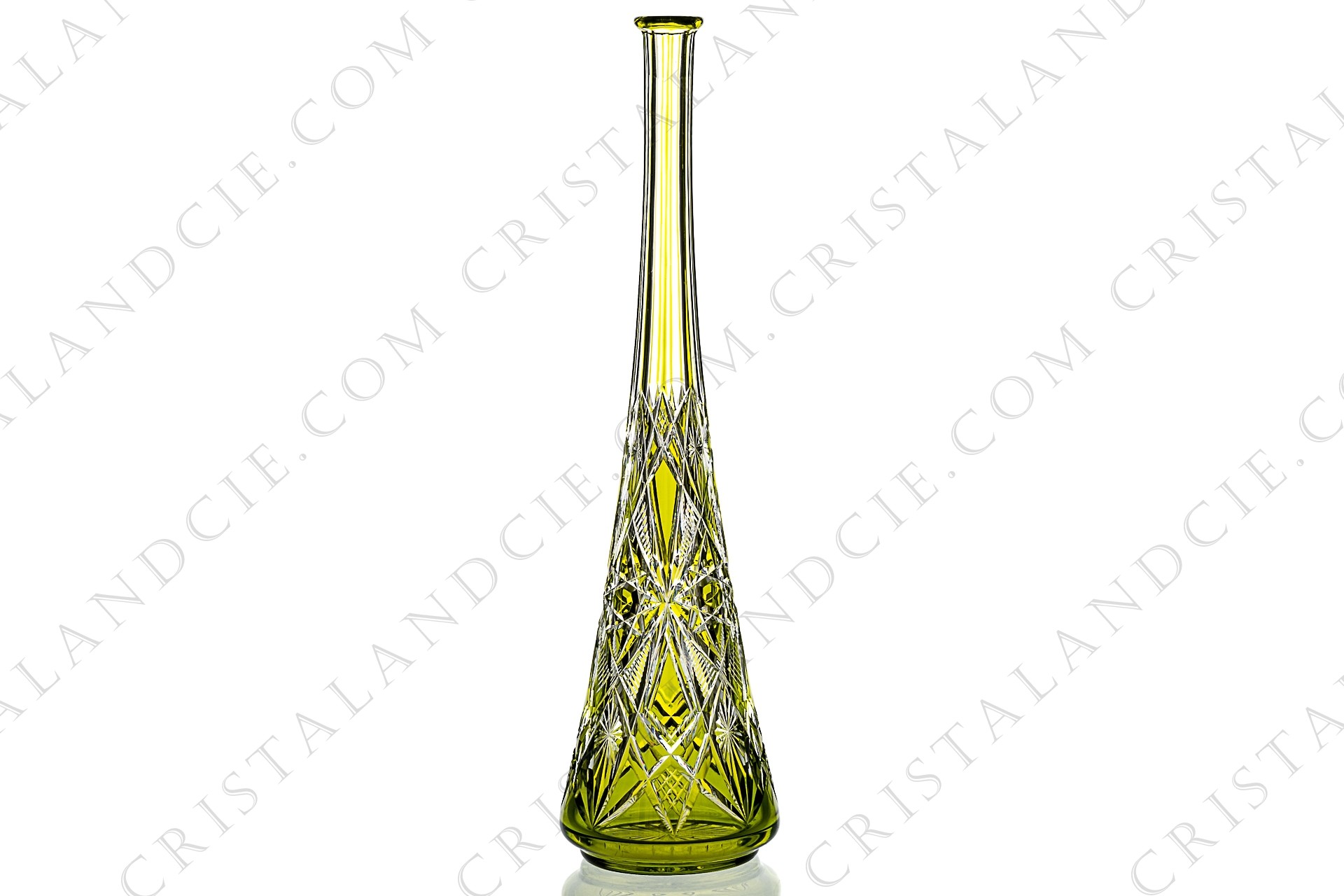 Towering decanter "de fantaisie" in yellow double layer crystal by Baccarat with an important cut pattern. Dating from the 1910's. Too old to be stamped.