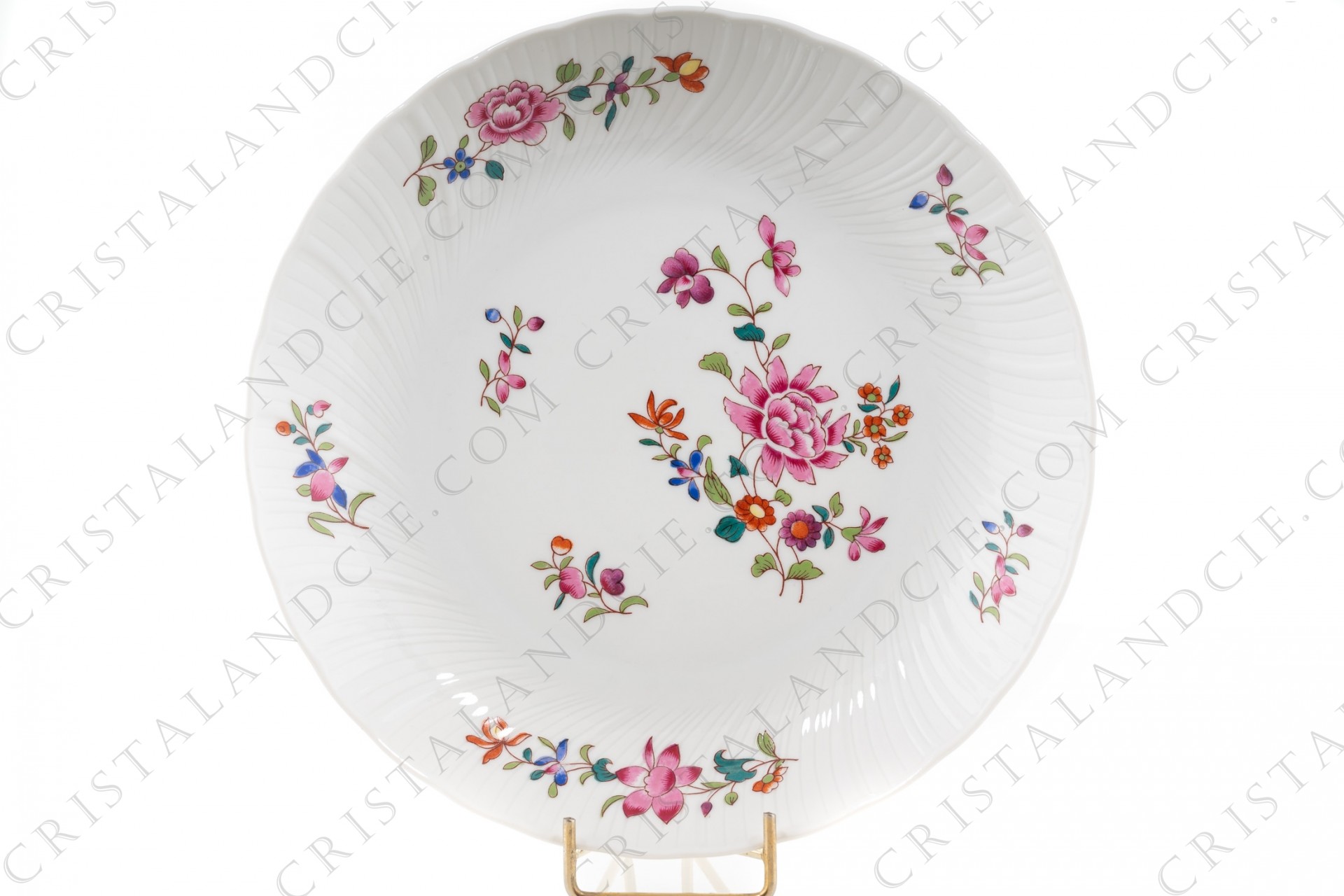 Assiette creuse en porcelaine de Limoges de la maison Bernardaud modèle Lowestoft ornée de fleurs polychromes.