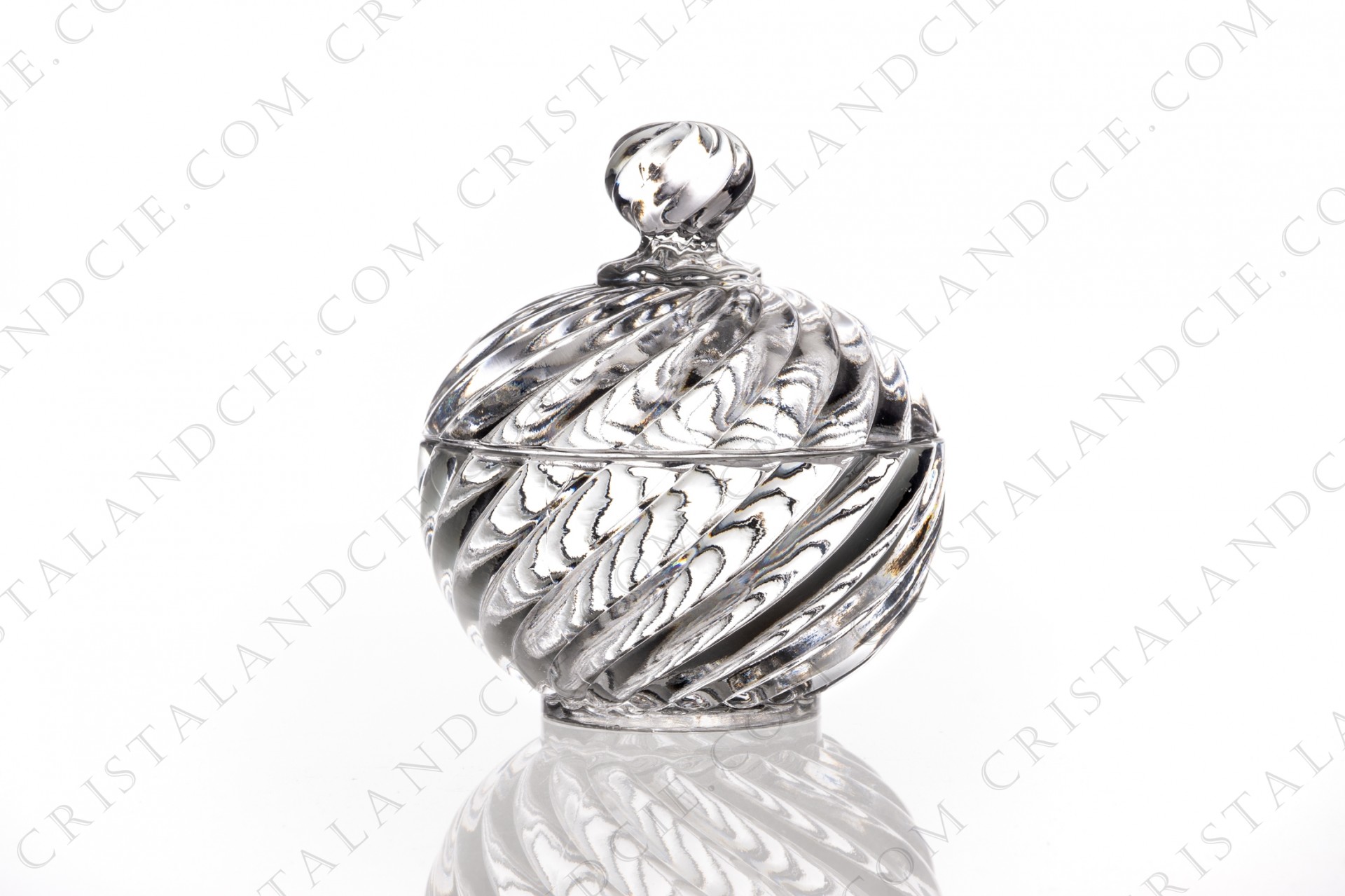 Boite à poudre à bouton en cristal de Baccarat modèle Bambous Tors.