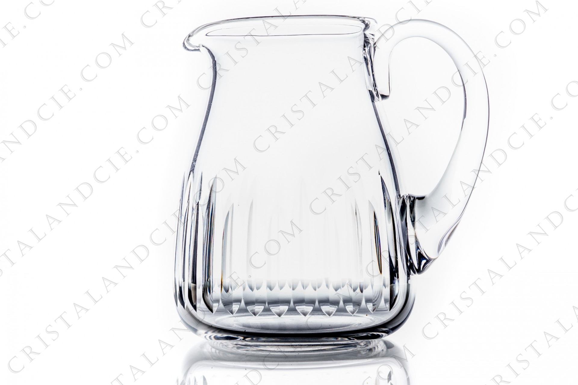 Broc à eau en cristal de Baccarat modèle Cassino à décor de biseaux taillés. Modèle produit de 1953 à 1978.