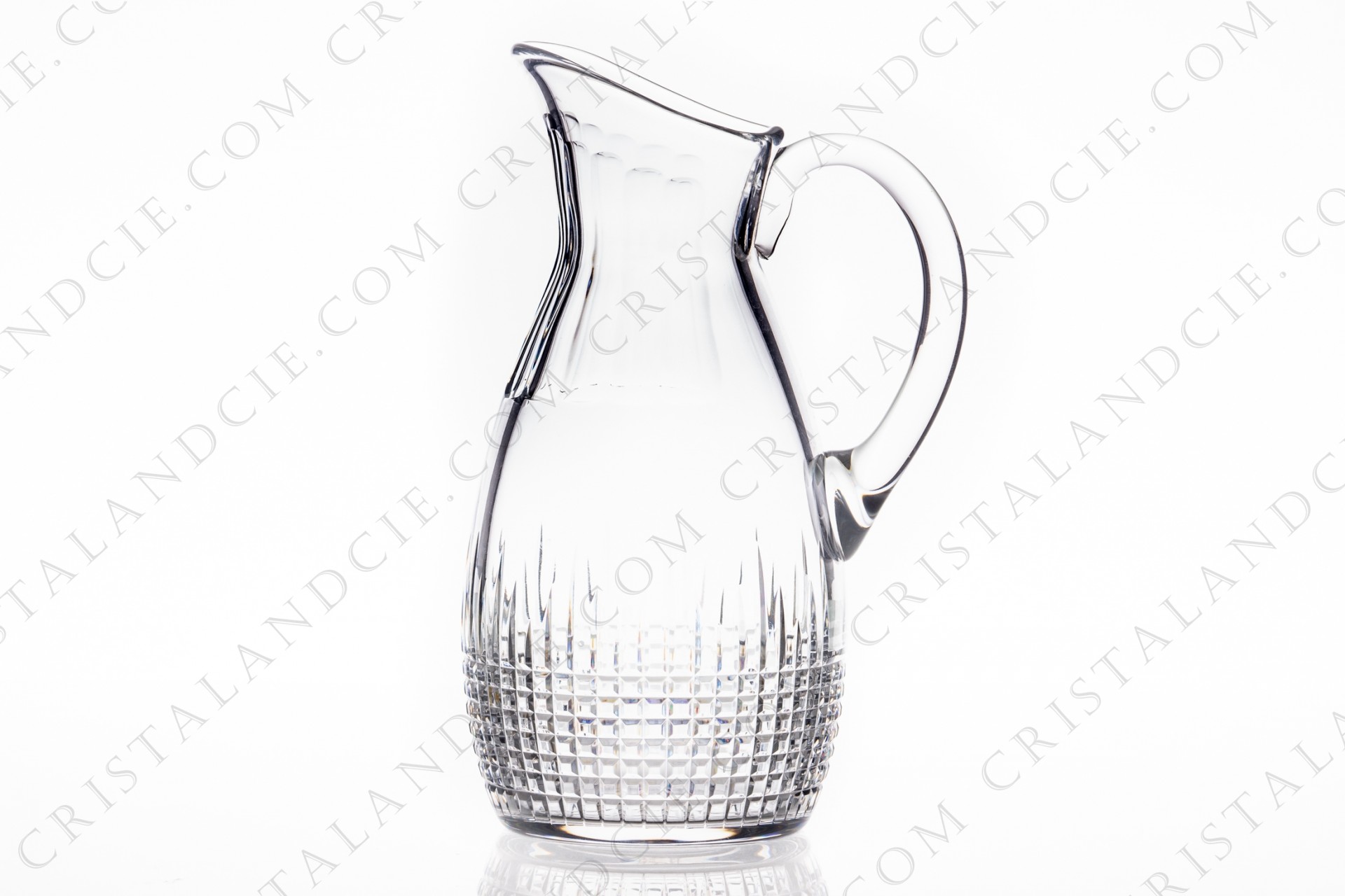 Broc à eau en cristal de Baccarat modèle Nancy présentant un important décor taillé de quadrillage. Modèle produit de 1909 à 2002.