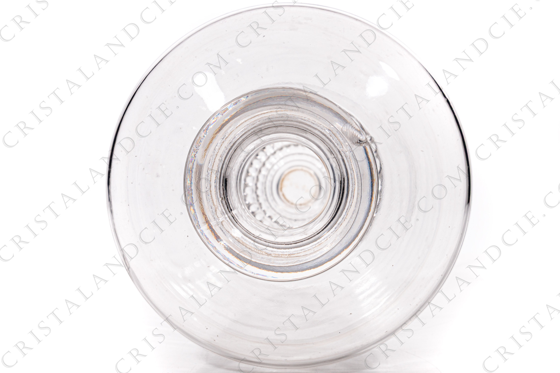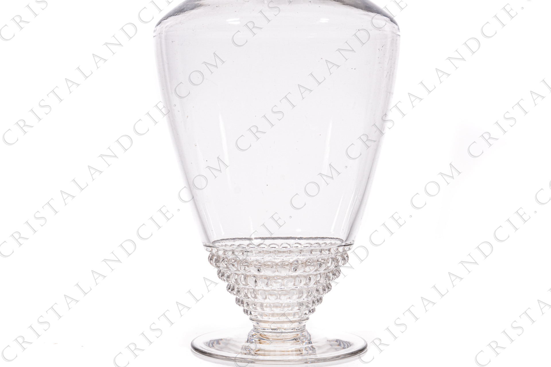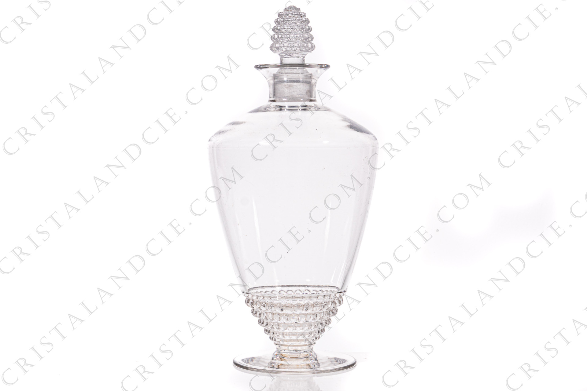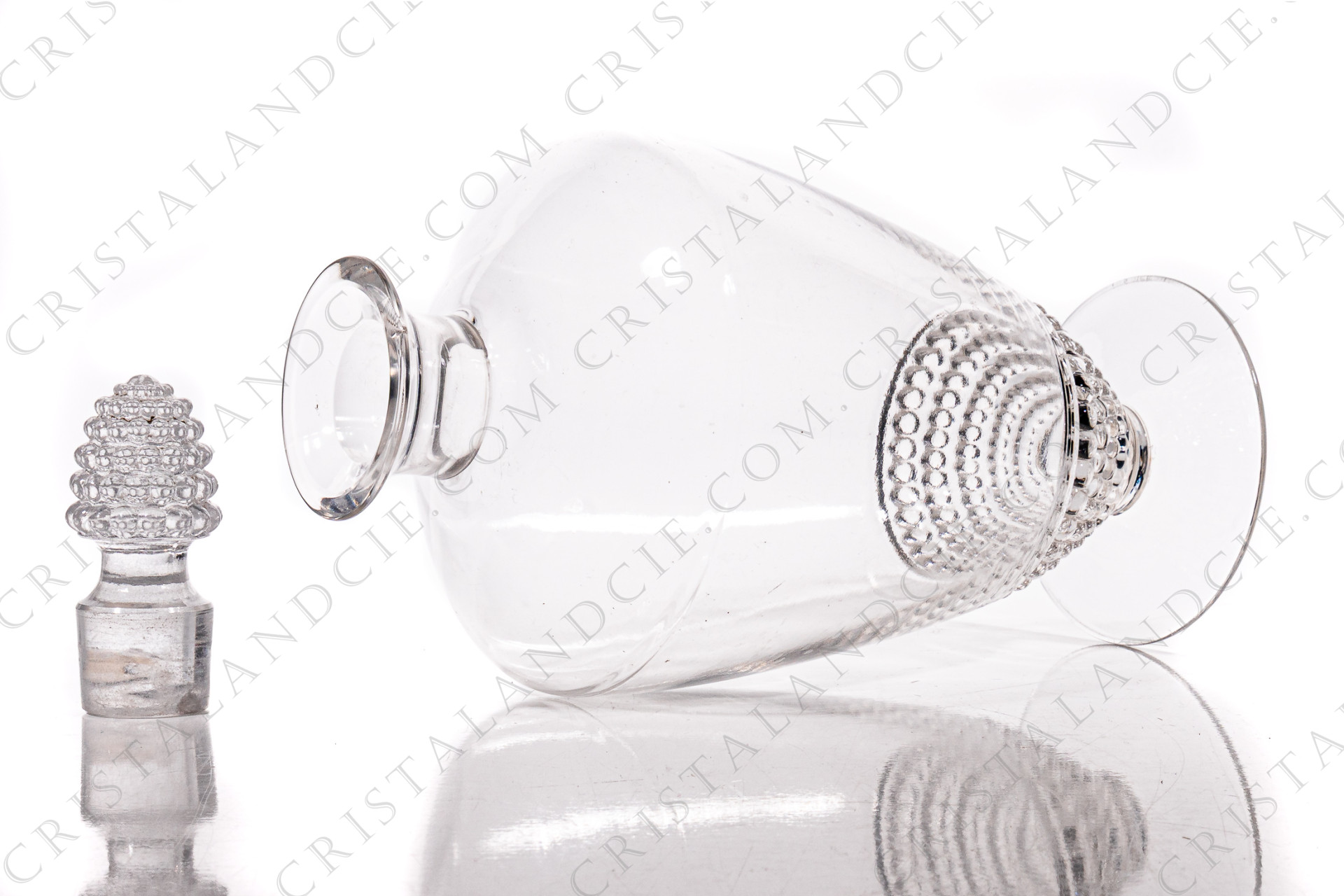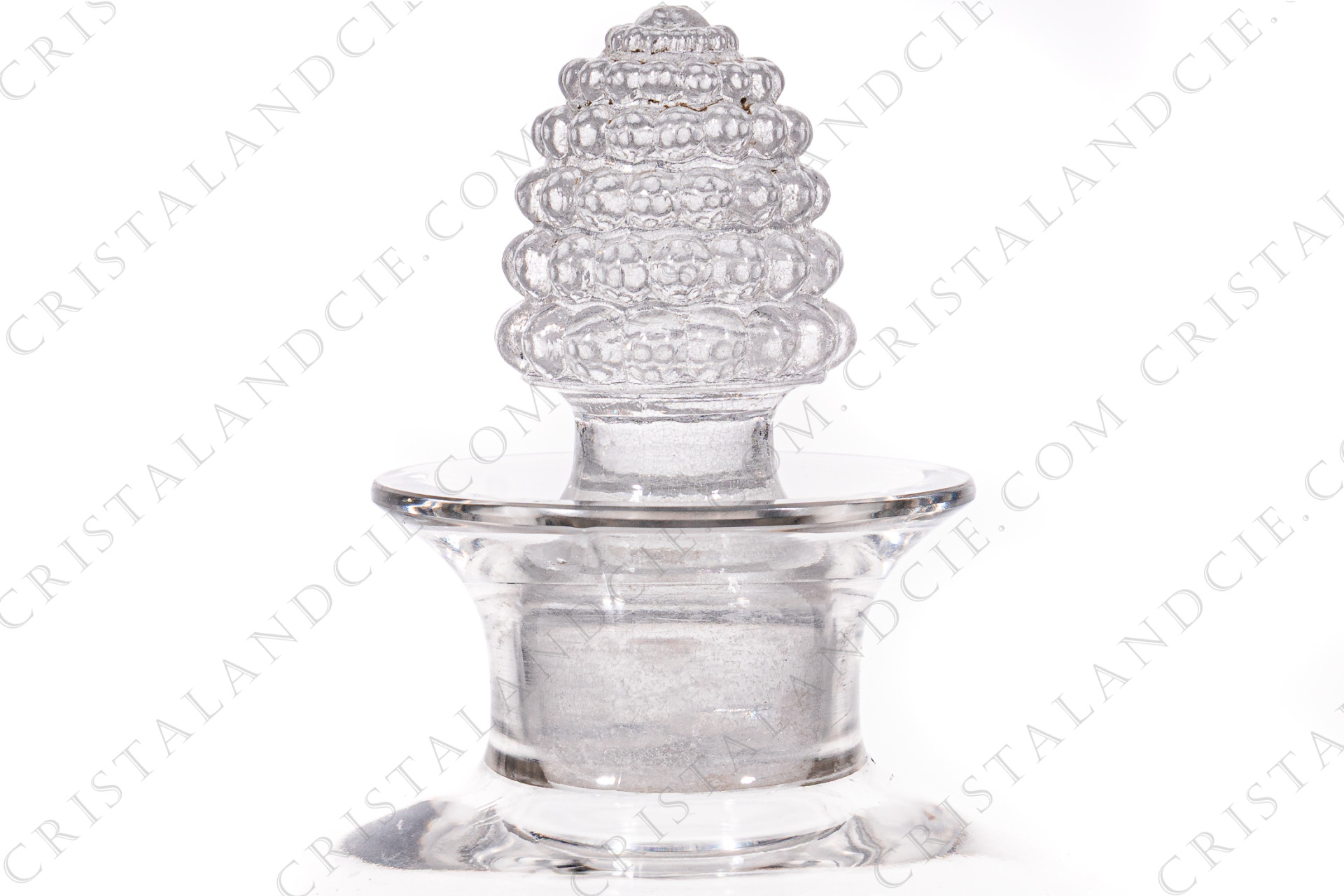Carafe à Porto en cristal de Lalique modèle Nippon ornée de frises de perles sur la paraison et le bouchon. Modèle créé par René Lalique en 1930. Estampillée.