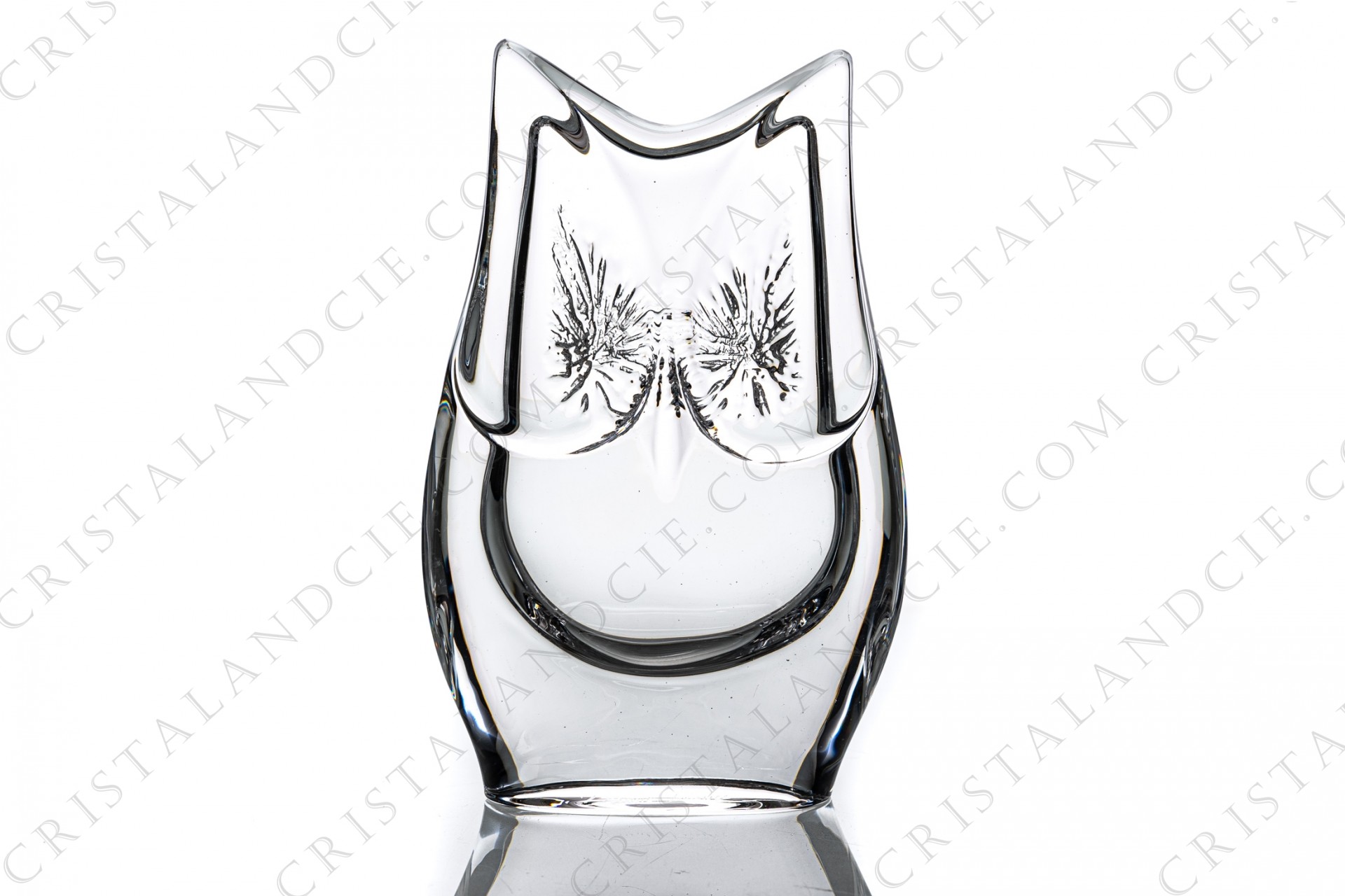 Chouette stylisée en cristal de Daum. Datant des années 1980. Estampillée.