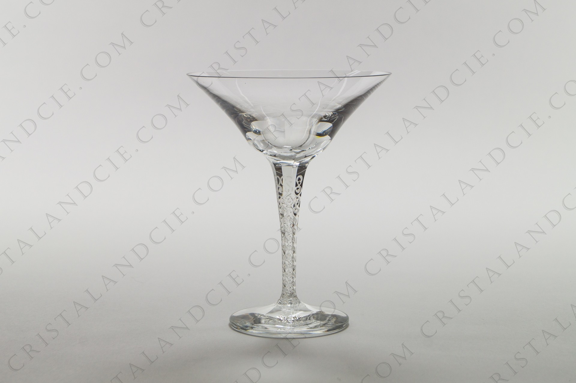 Coupe à Champagne en cristal de Lalique modèle Treves présentant un pied finement gravé d'arabesques.