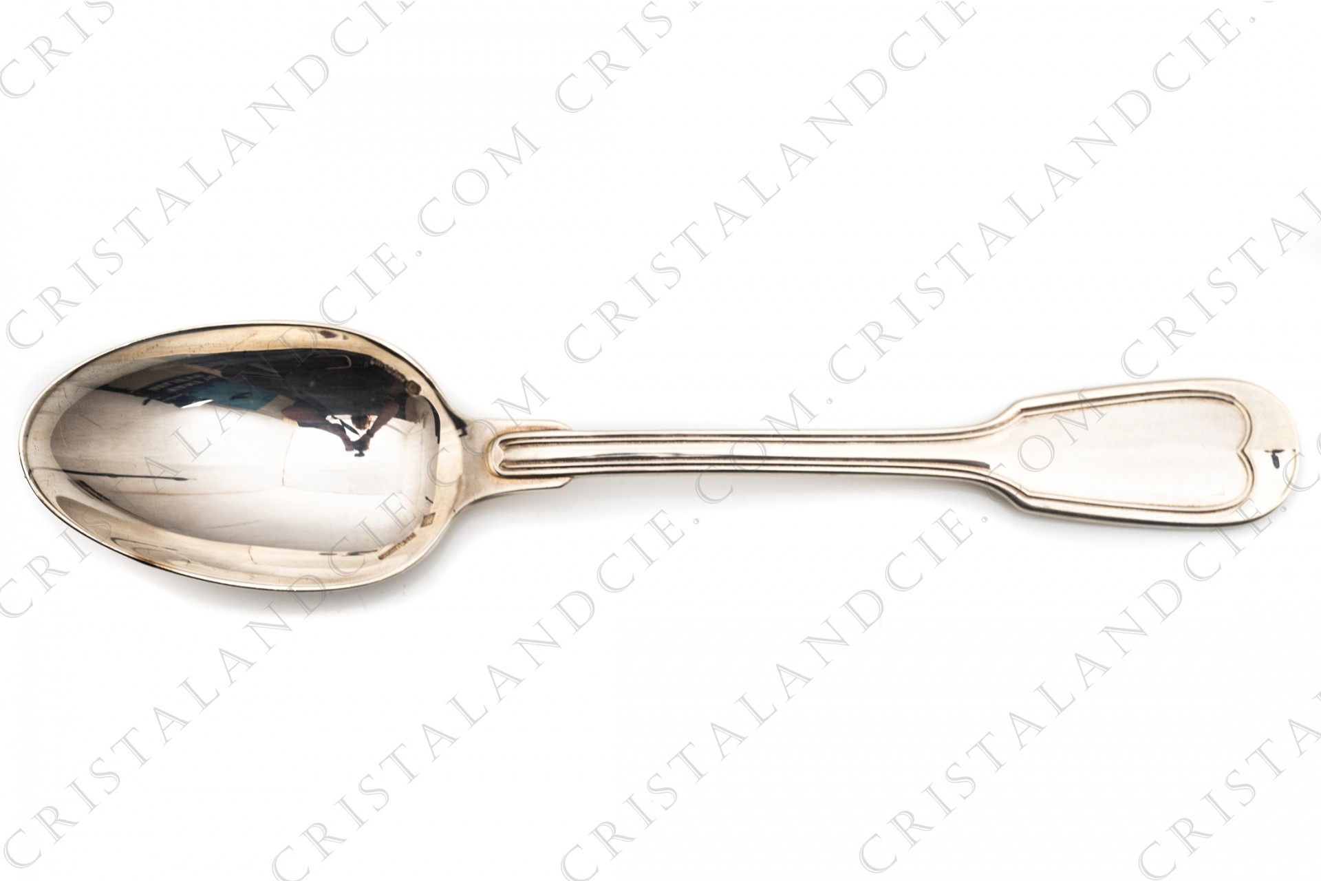 Cuillère de table en argent massif de Christofle modèle Chinon à décor de filets. Poinçon Minerve. Estampillée.