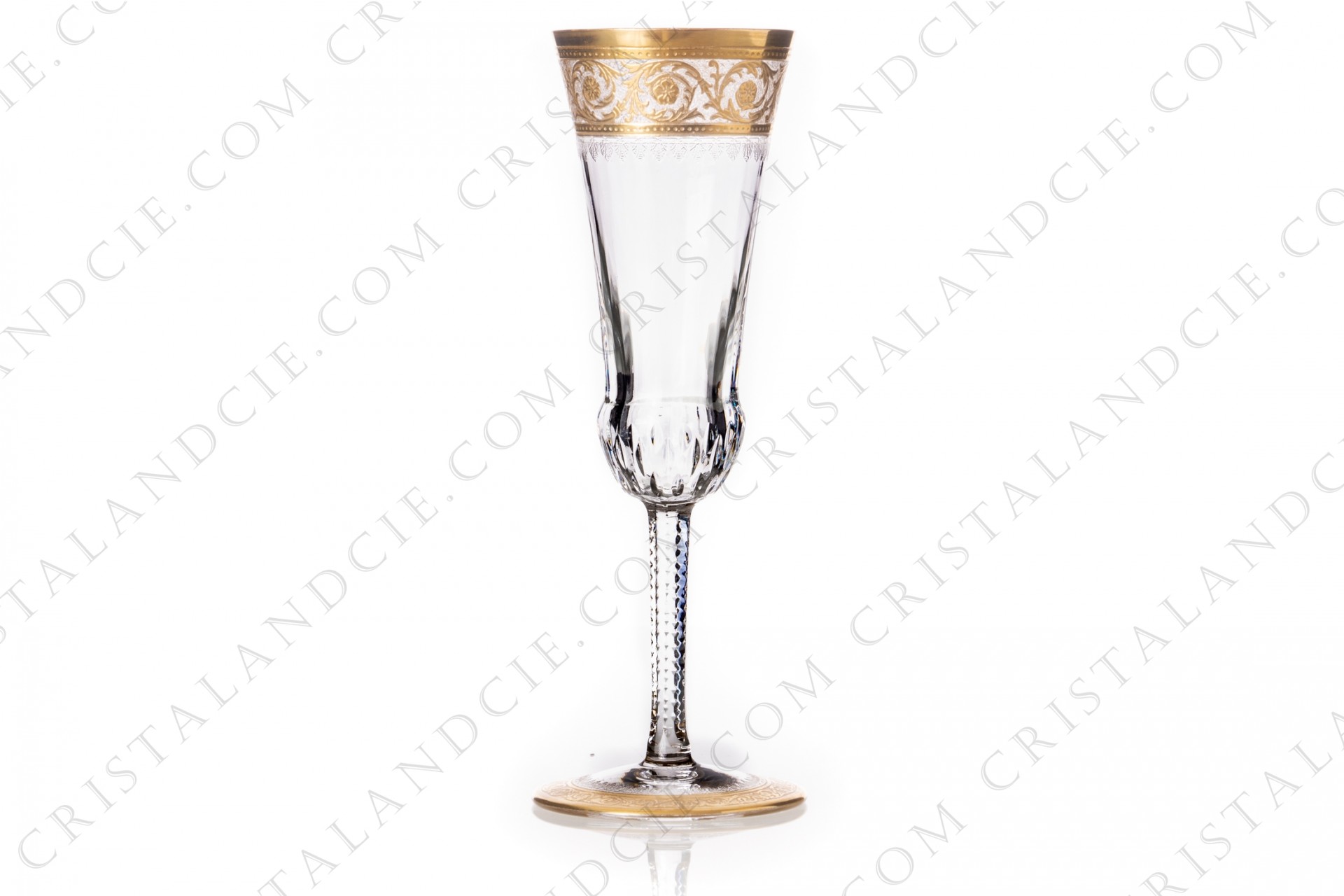 Flûte à Champagne en cristal de Saint-Louis modèle Thistle présentant un important décor taillé et gravé incrusté d'or.