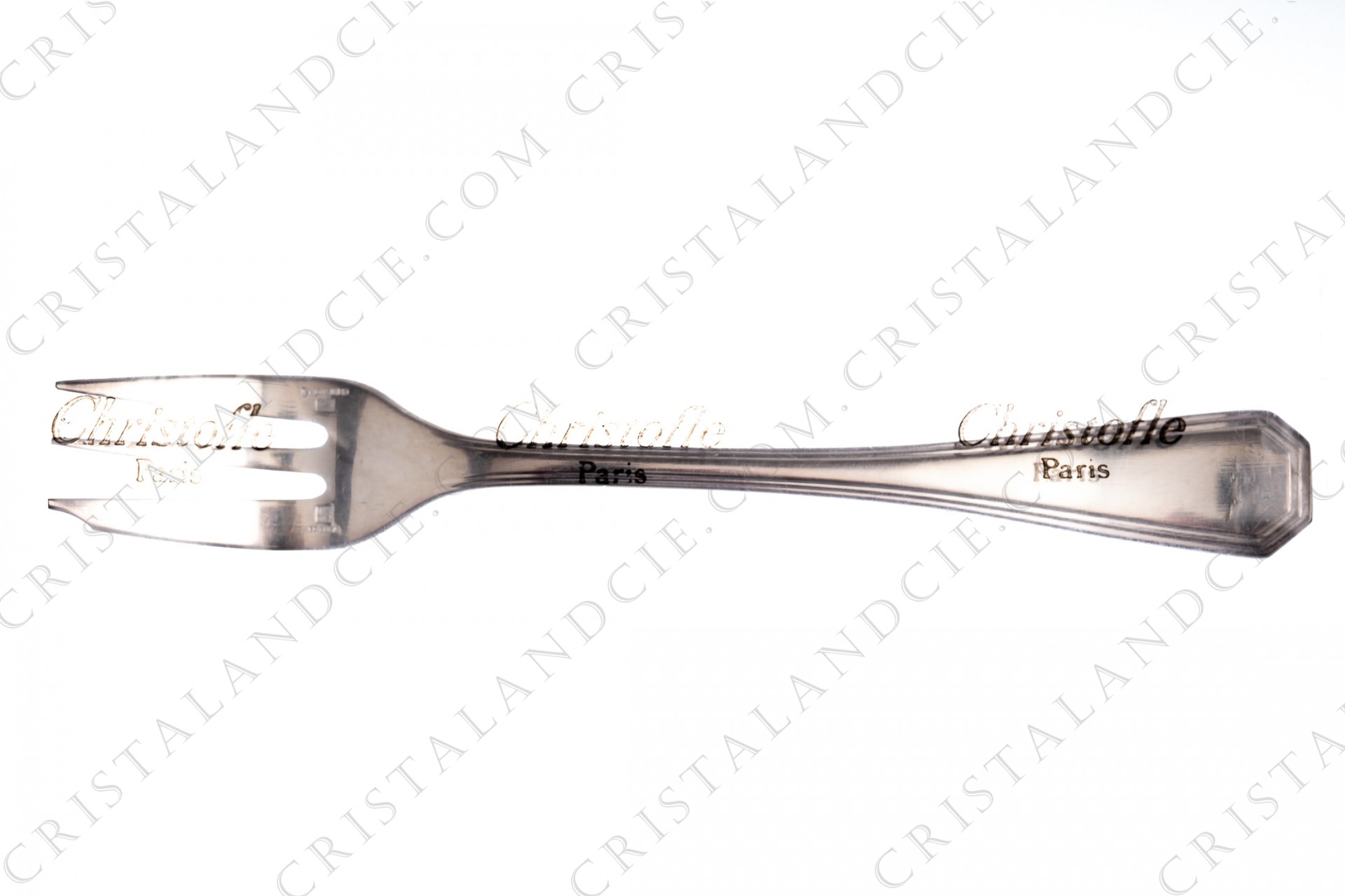 Fourchette à gâteaux en métal argenté de Christofle modèle America, orné de filets.
