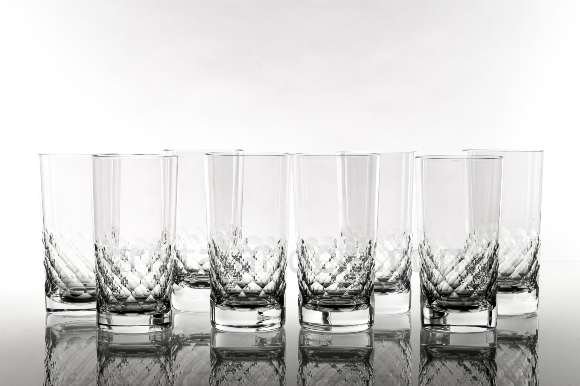 Huit Chopes en cristal de Baccarat modéle Chauny présentant un décor de nid d'abeille taillé.