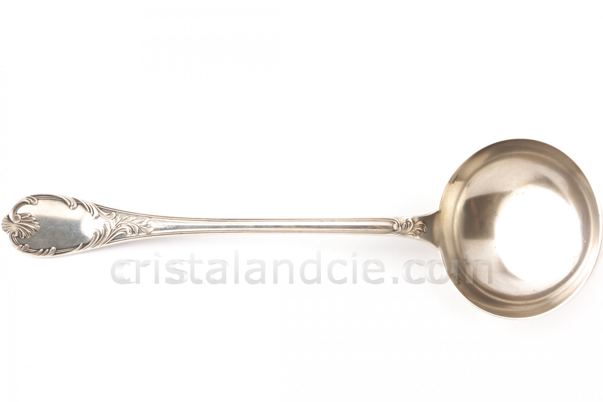 Louche en métal argenté de la maison Christofle modèle Marly présentant un décor Rocaille. Estampillée.