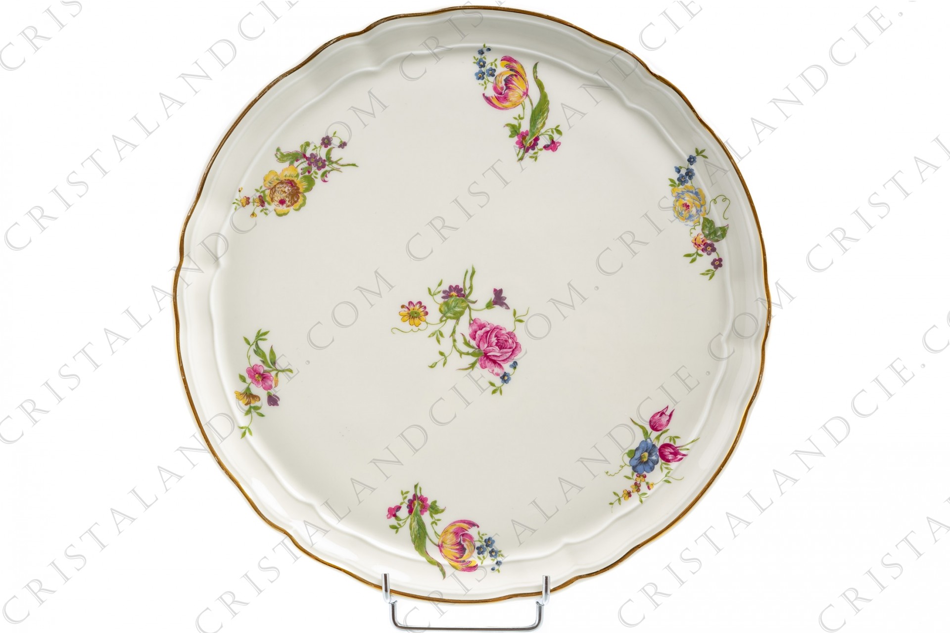 Plat à tarte en porcelaine de Limoges de la maison Bernardaud forme Régence décorées de fleurs polychromes.