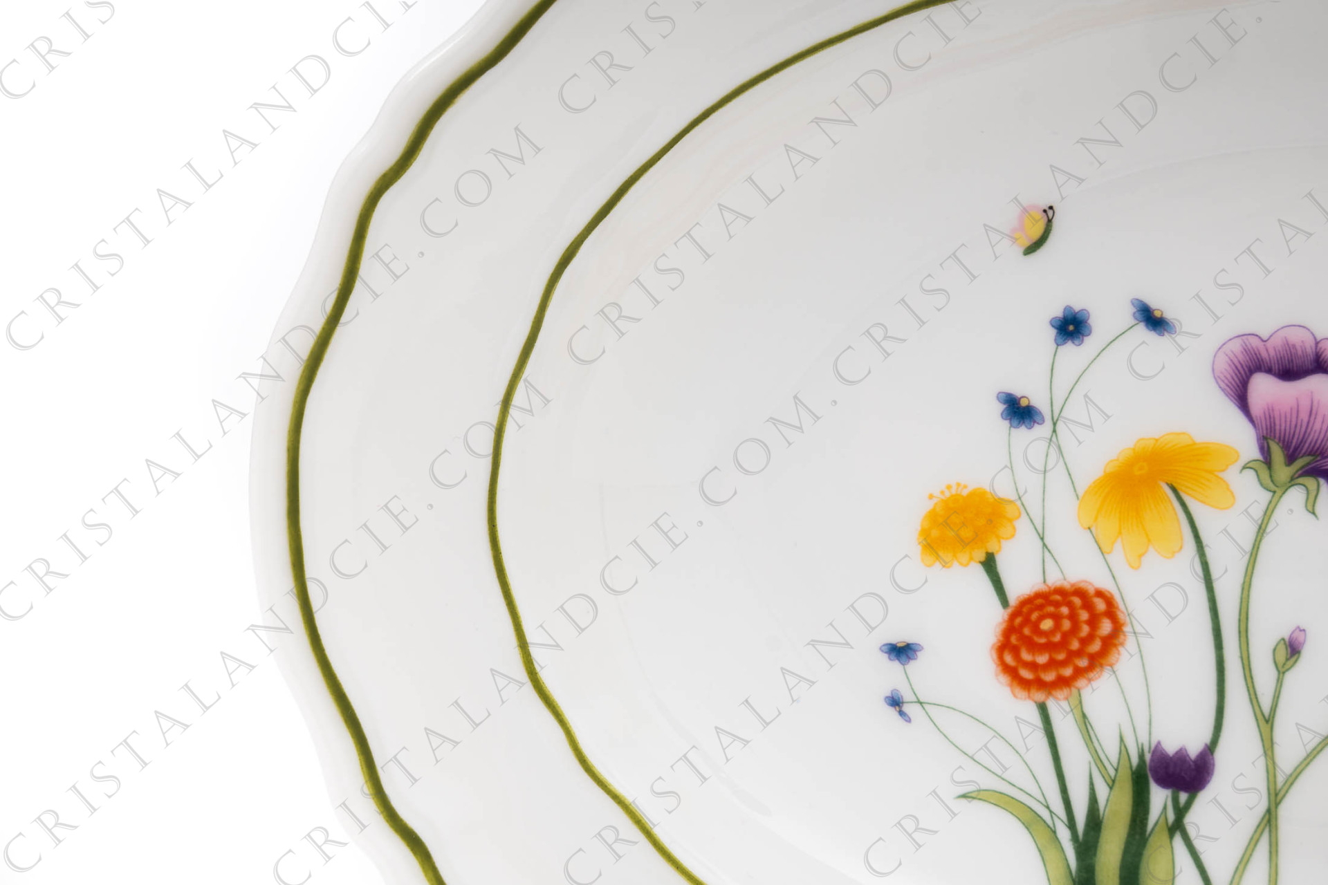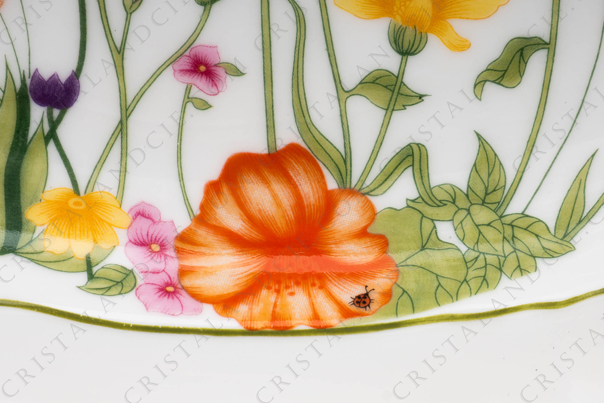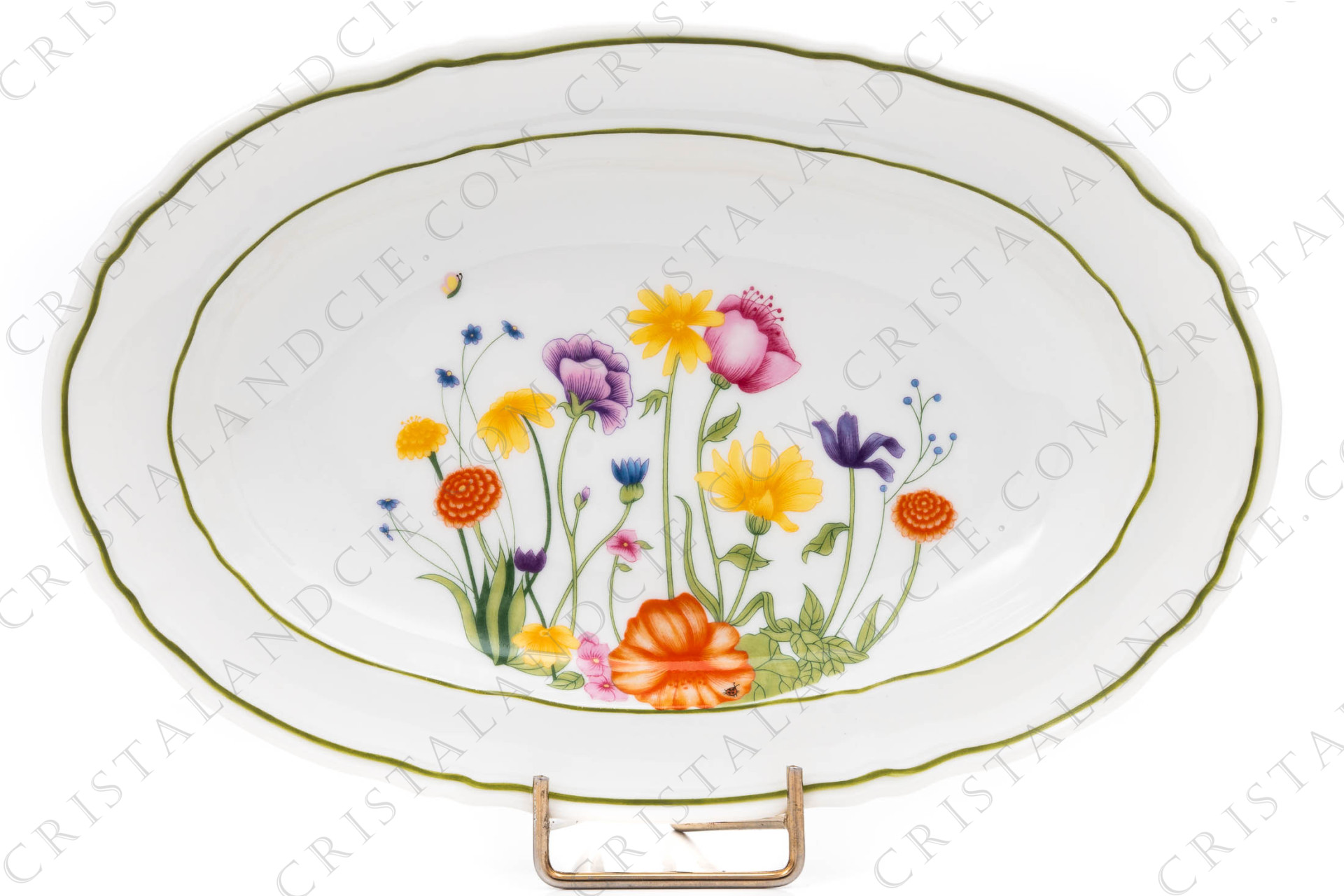 Ravier en porcelaine de Limoges de la maison Raynaud pour Denby modèle English Garden orné de fleurs polychromes et d'insectes.