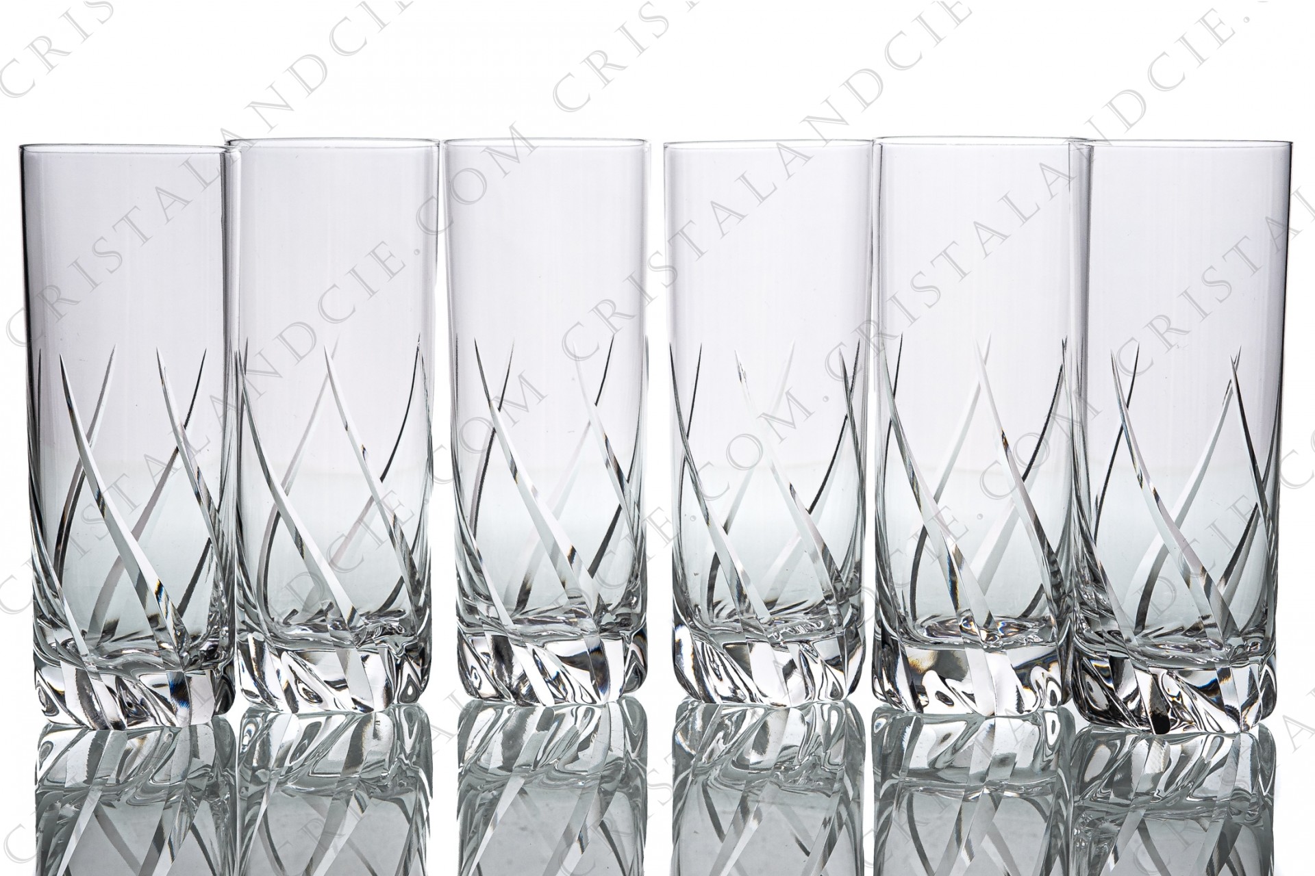 Série de six flûtes à Champagne en cristal de Daum modèle Bleneau à décor taillé. Estampillées.