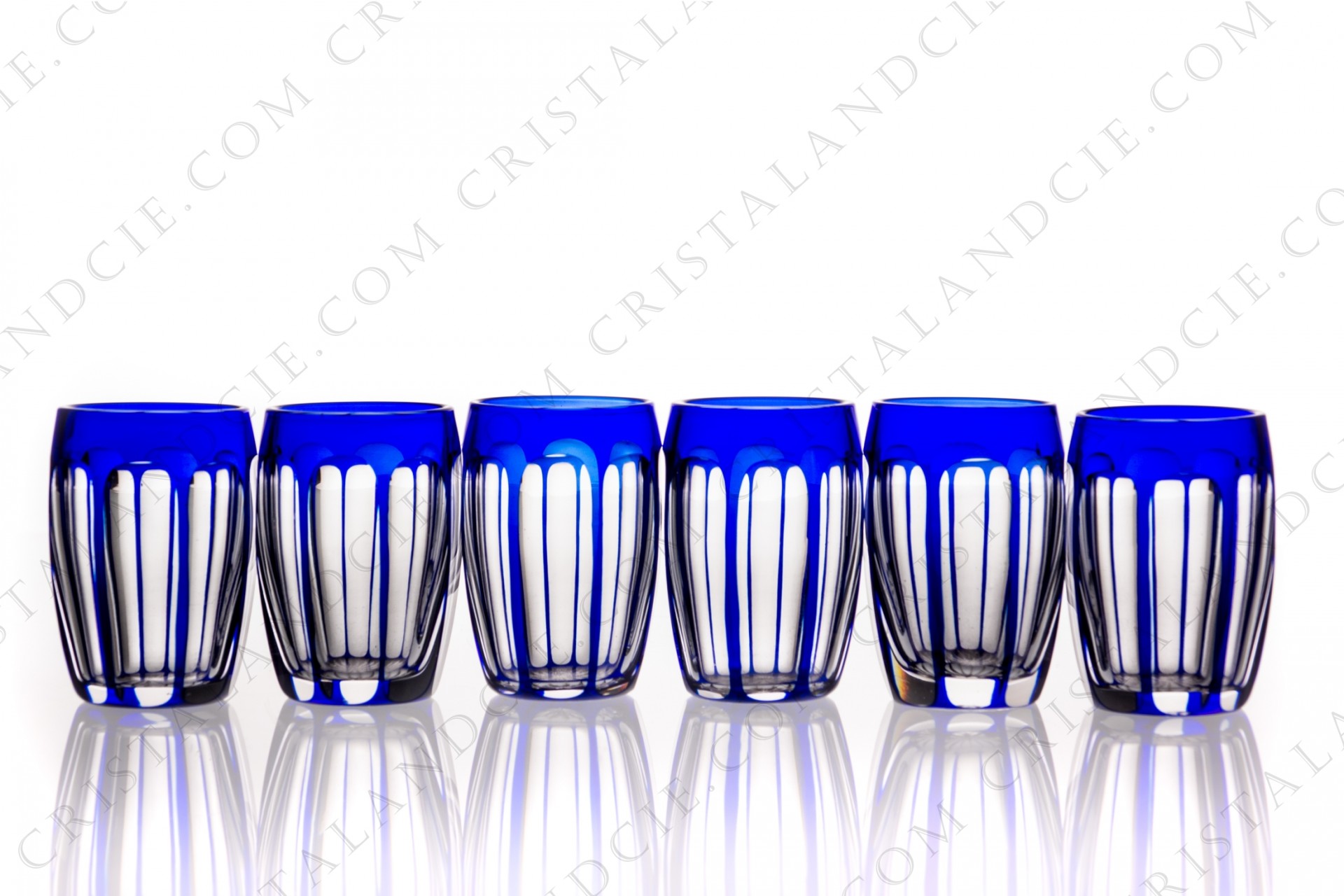 Série de six gobelets à Porto en cristal double-couches bleu de Saint-Louis. Modèle présent dans le catalogue de 1930. Trop anciens pour être signés.
